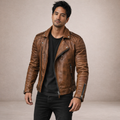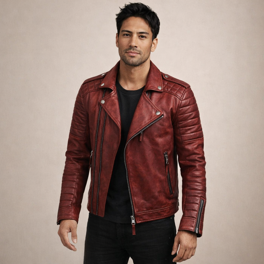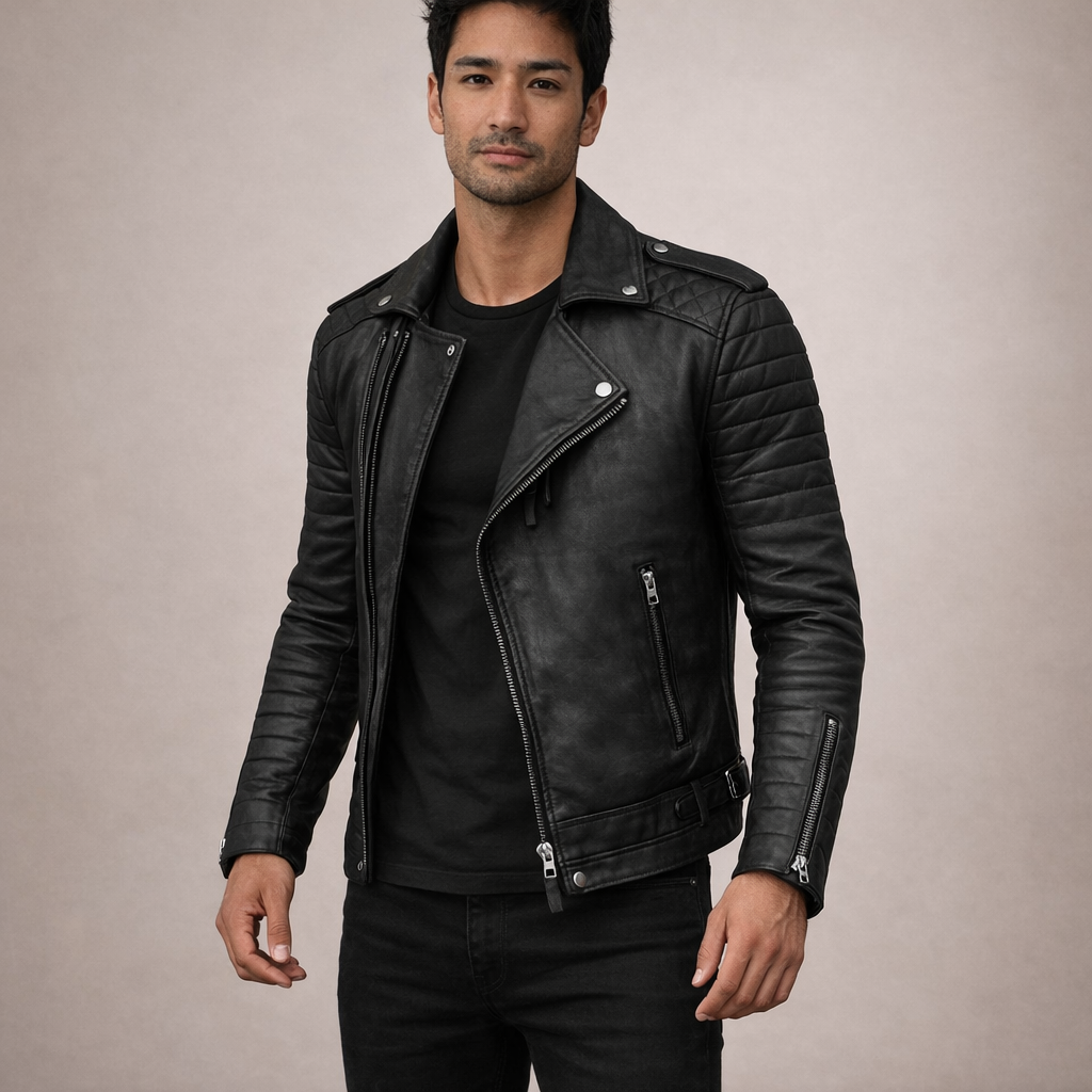 Bold, modern and effortlessly rugged, this Men’s Biker-Style Jacket delivers timeless edge with a contemporary finish. The structured silhouette and quilted detailing create a powerful statement piece that elevates both casual and evening looks.