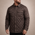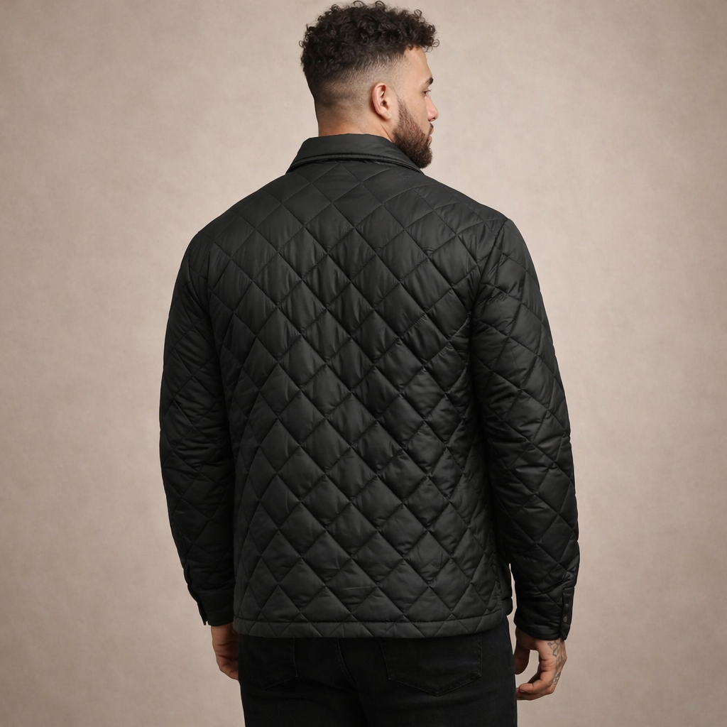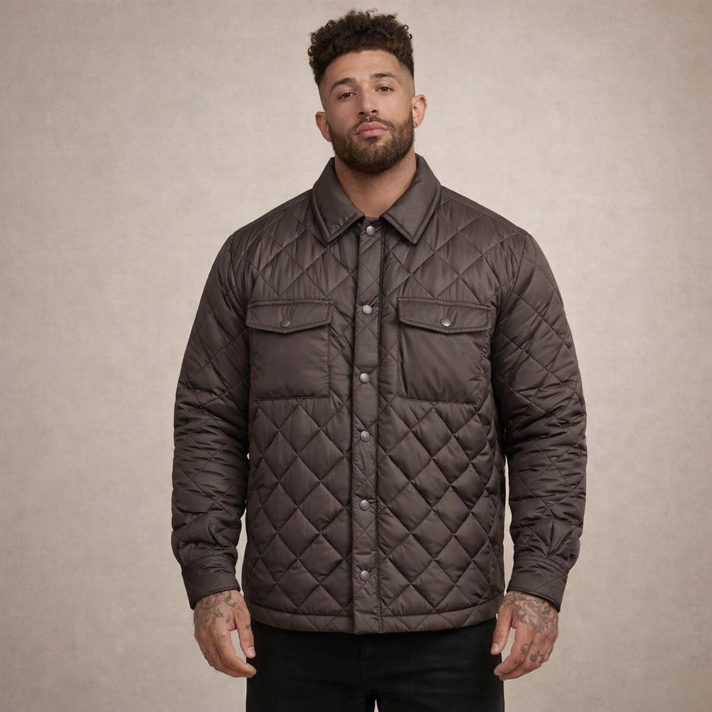 Details: Diamond quilting, flap chest pockets with snap closures, and reinforced stitching for durability and a refined finish.