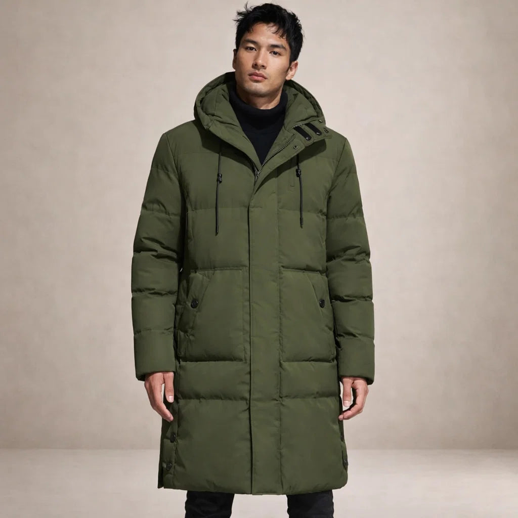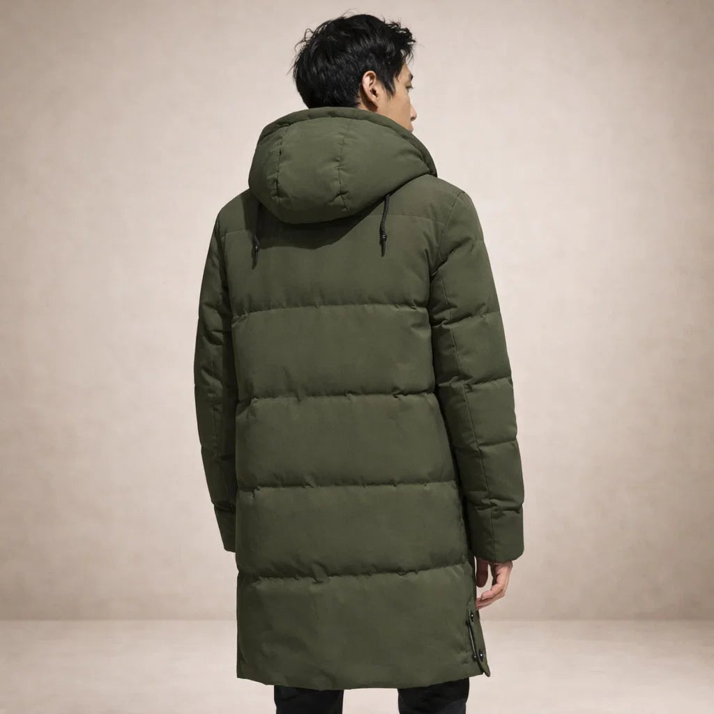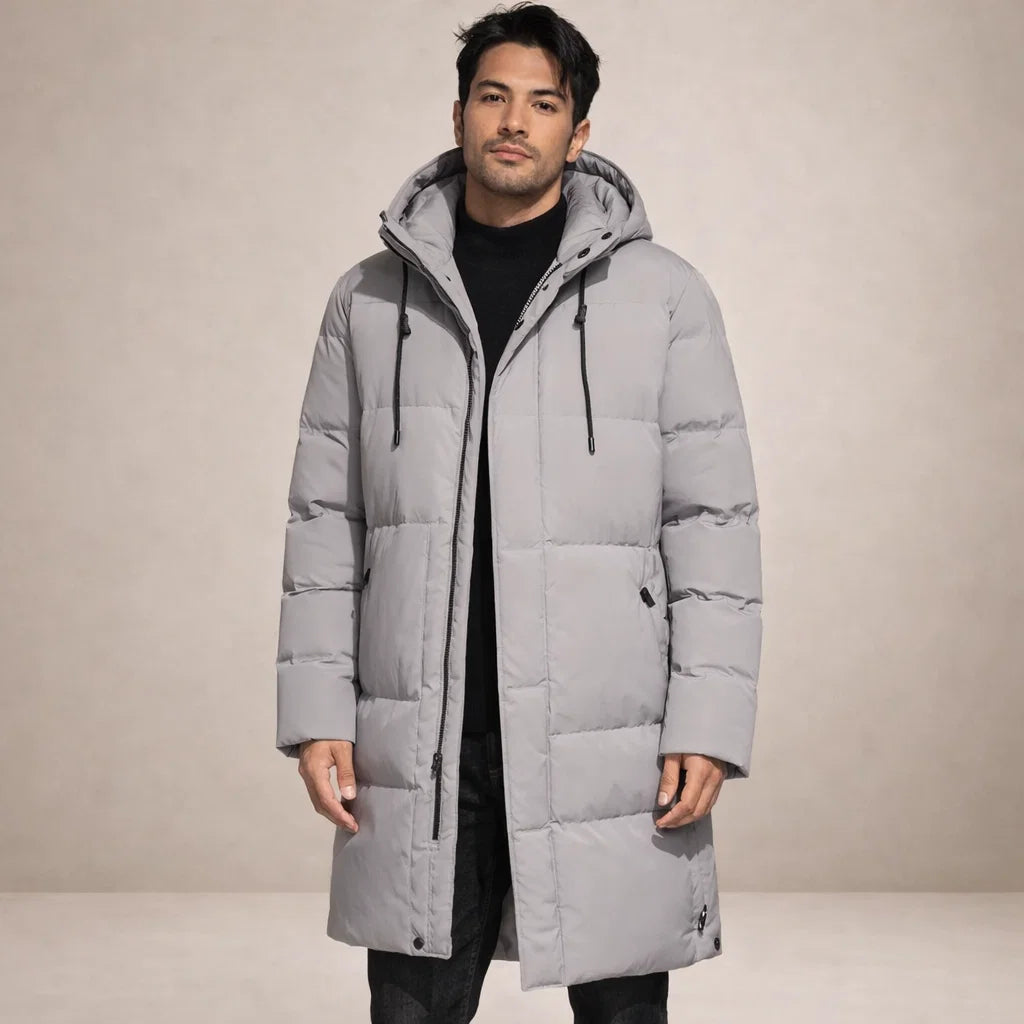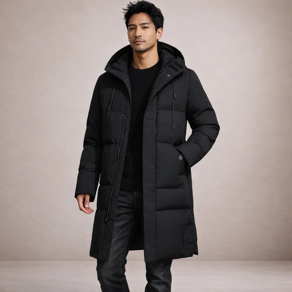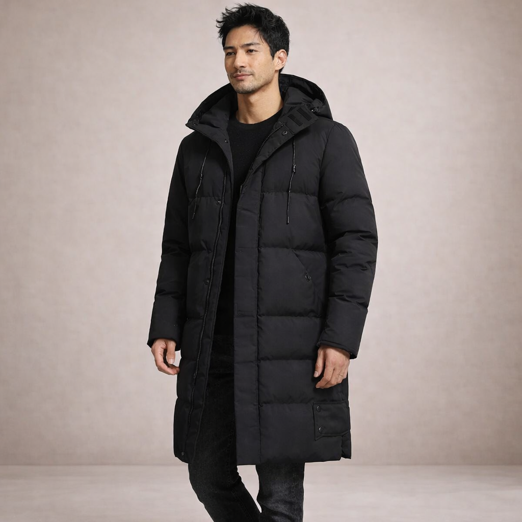 Smart, streamlined and built for colder days, this Men’s Long Quilted Hooded Coat offers dependable warmth with a contemporary edge. The extended length and clean black finish create a sharp silhouette, making it ideal for daily commutes, weekend wear or refined casual styling. Practical design elements ensure comfort and protection throughout the season.