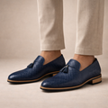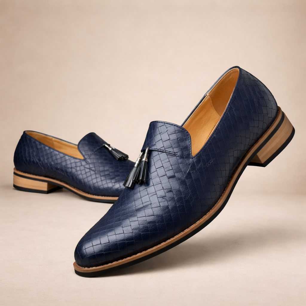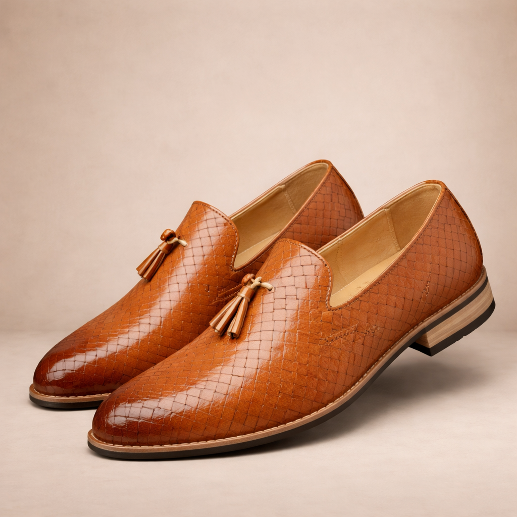 Design: Refined loafer profile with an elegant woven leather texture and classic tassel accent