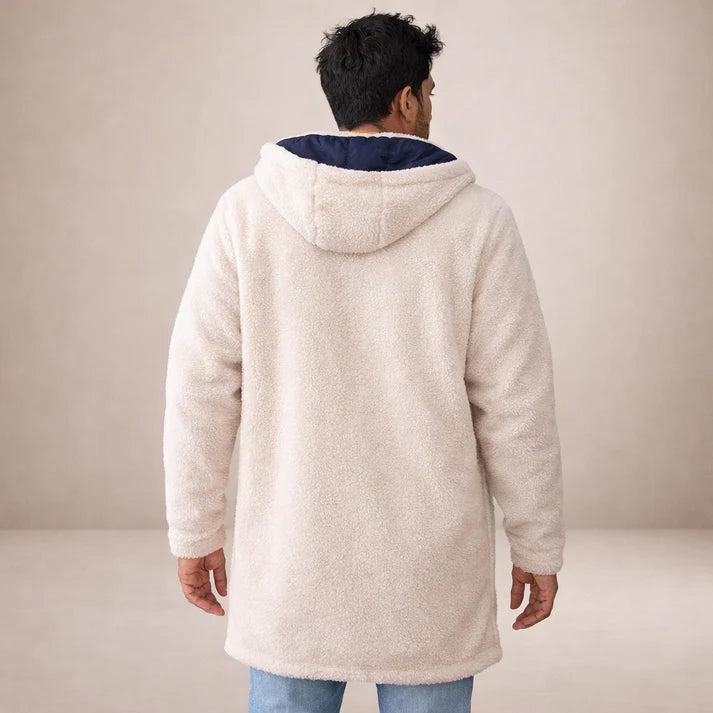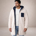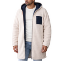 Men’s Reversible Long Teddy Coat with Hood and Zip Front