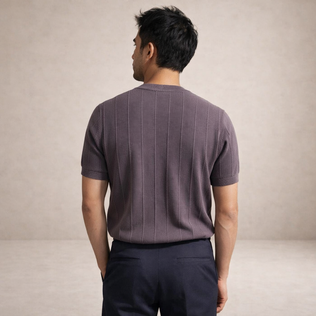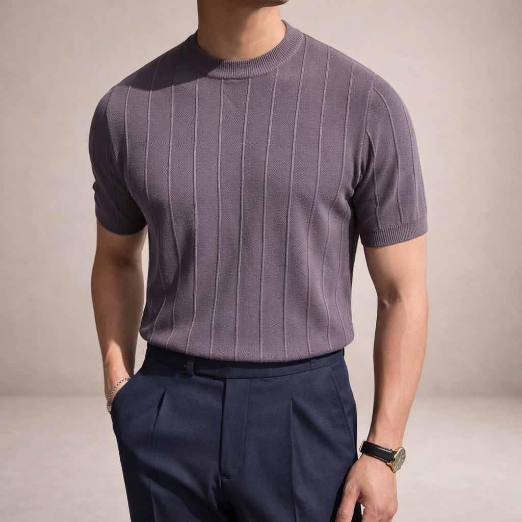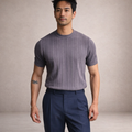 Men’s Ribbed Knit T-Shirt with Crew Neck