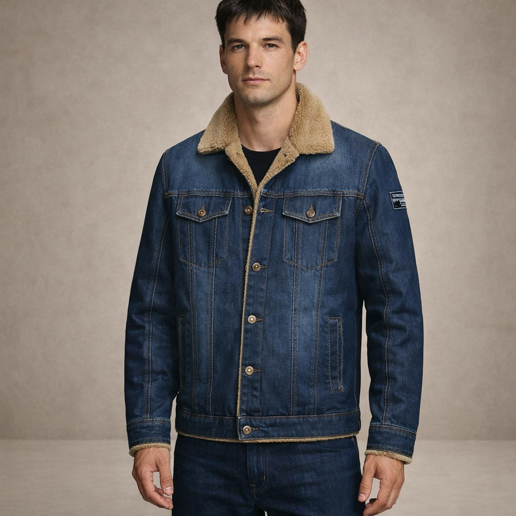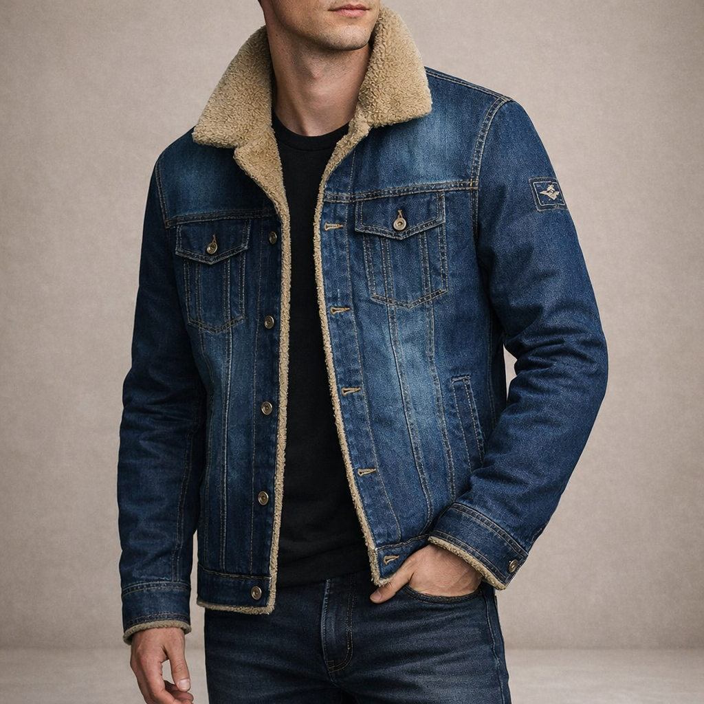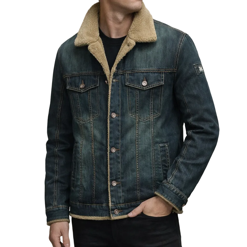 Key features of this Men’s Sherpa-Lined Denim Jacket with Button Fastening and Classic Collar