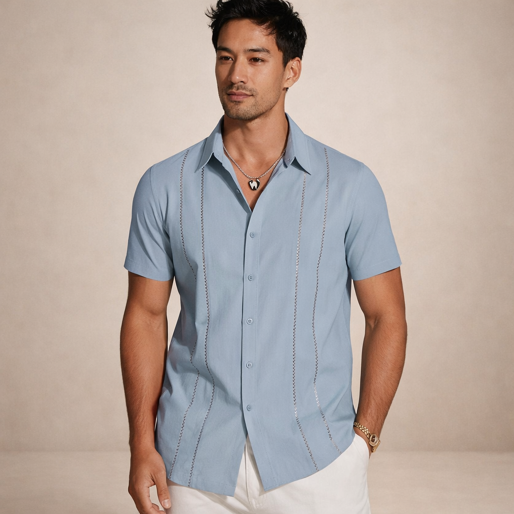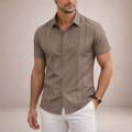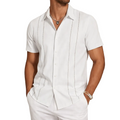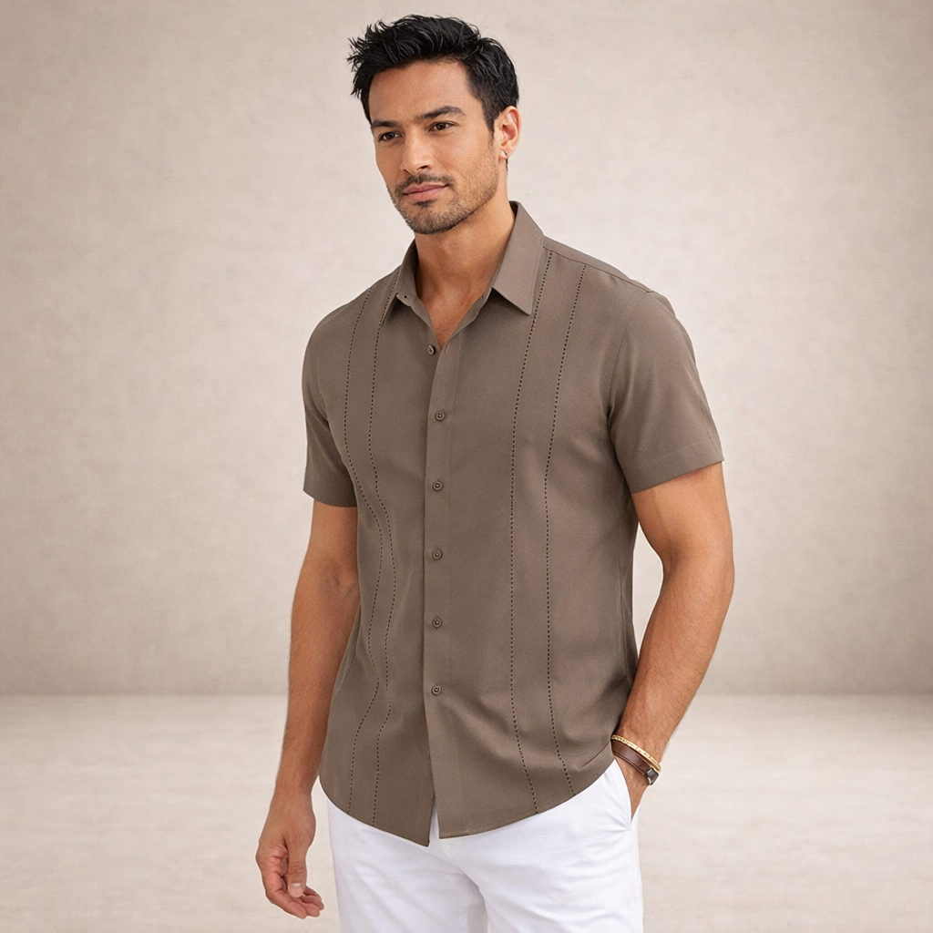 Men’s Short Sleeve Button-Up Shirt with Decorative Stitching