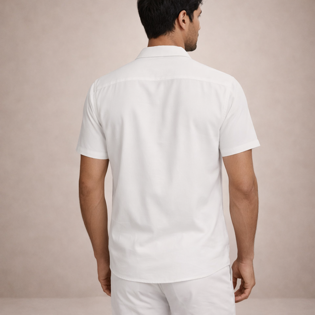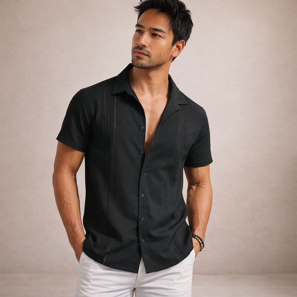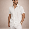 Clean and contemporary, this Men’s Short Sleeve Button-Through Shirt with Vertical Stitch Detail delivers effortless smart-casual appeal. The streamlined silhouette and subtle design accents make it ideal for warm-weather occasions, from relaxed evenings to refined holiday styling. Light and versatile, it offers an easy balance between comfort and polish.