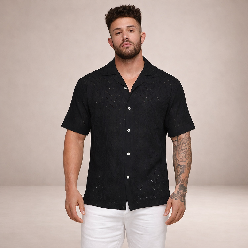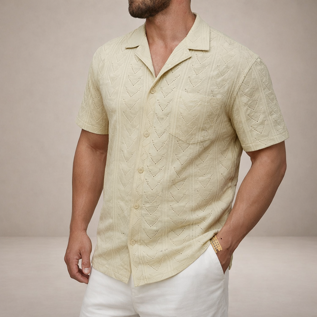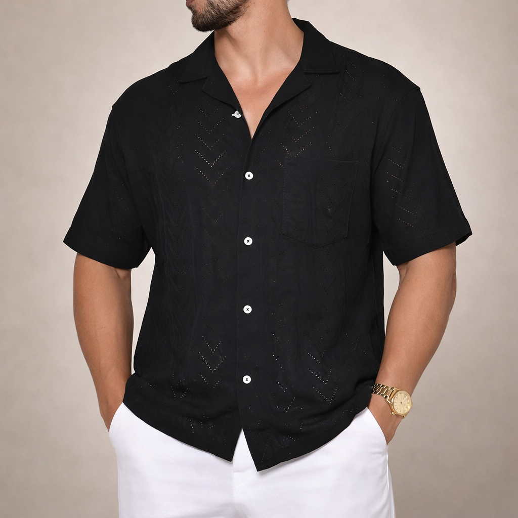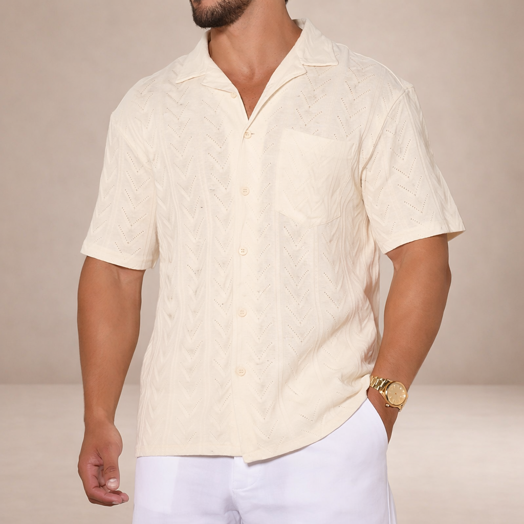 Men’s Short Sleeve Textured Button-Through Shirt