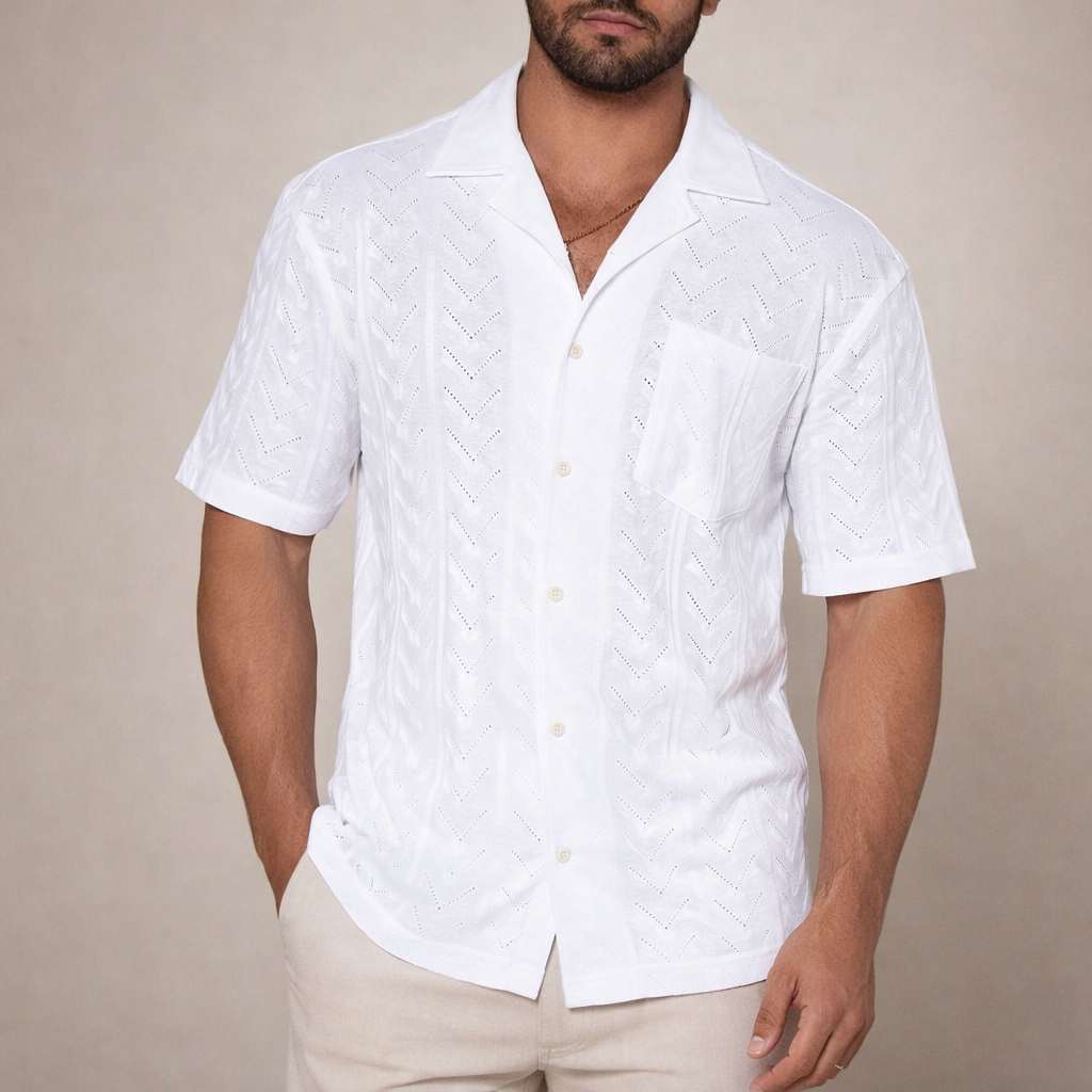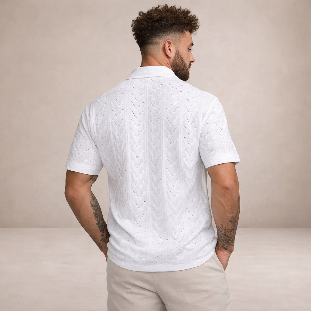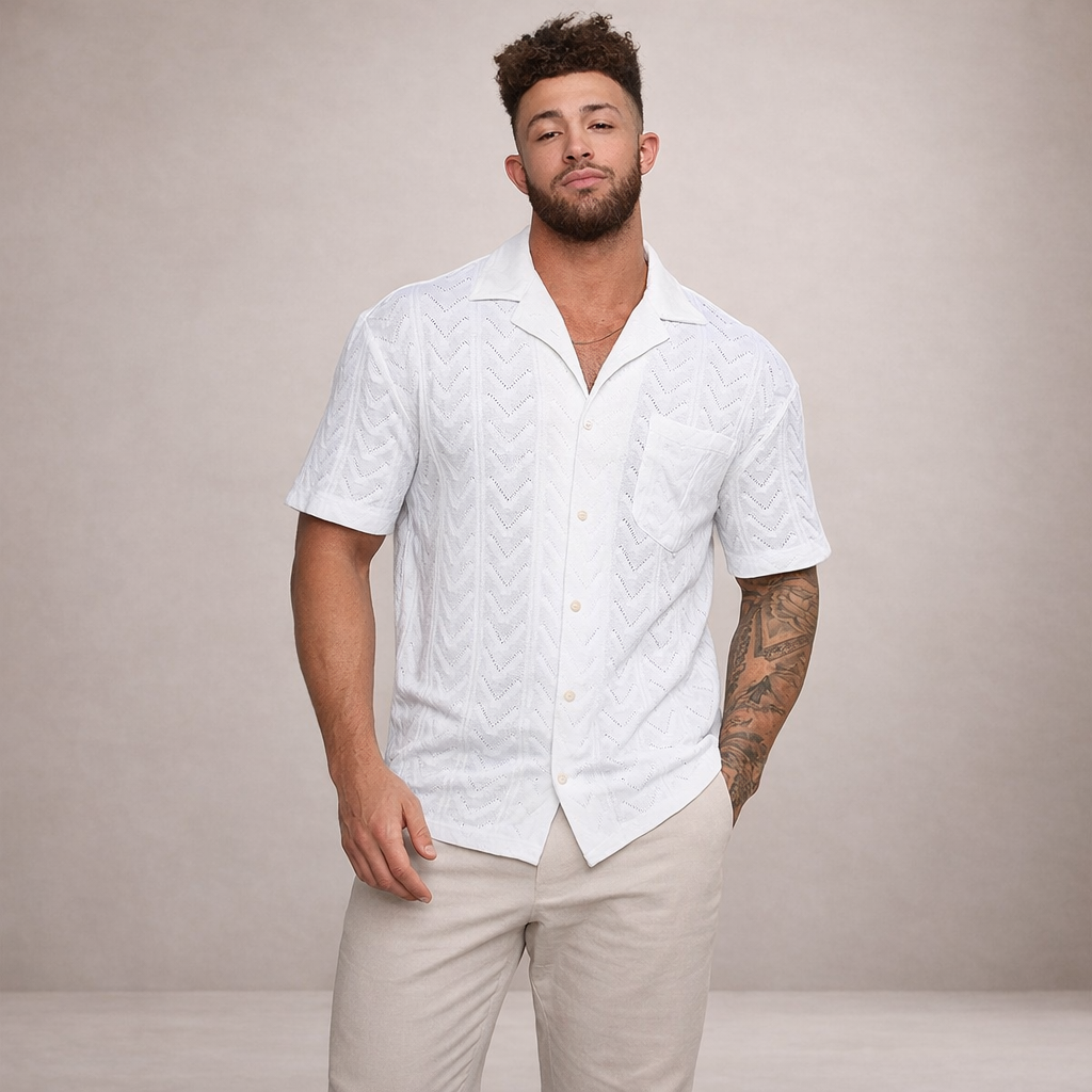 Elevate your warm-weather wardrobe with this refined short-sleeved shirt, designed for effortless summer style. The lightweight knitted texture and clean white finish create a fresh, contemporary look that works equally well for holidays, garden gatherings or relaxed evenings out.