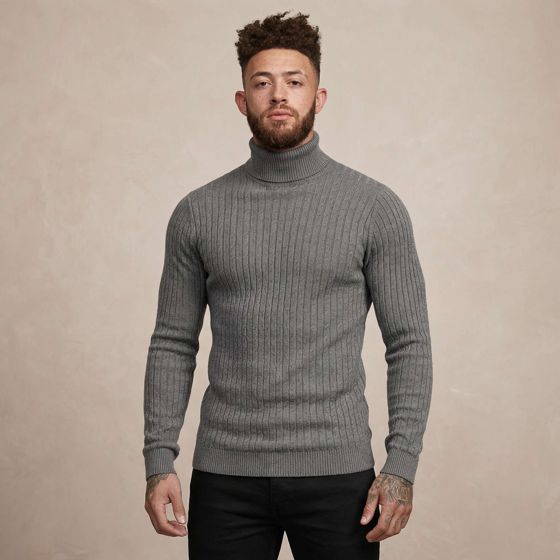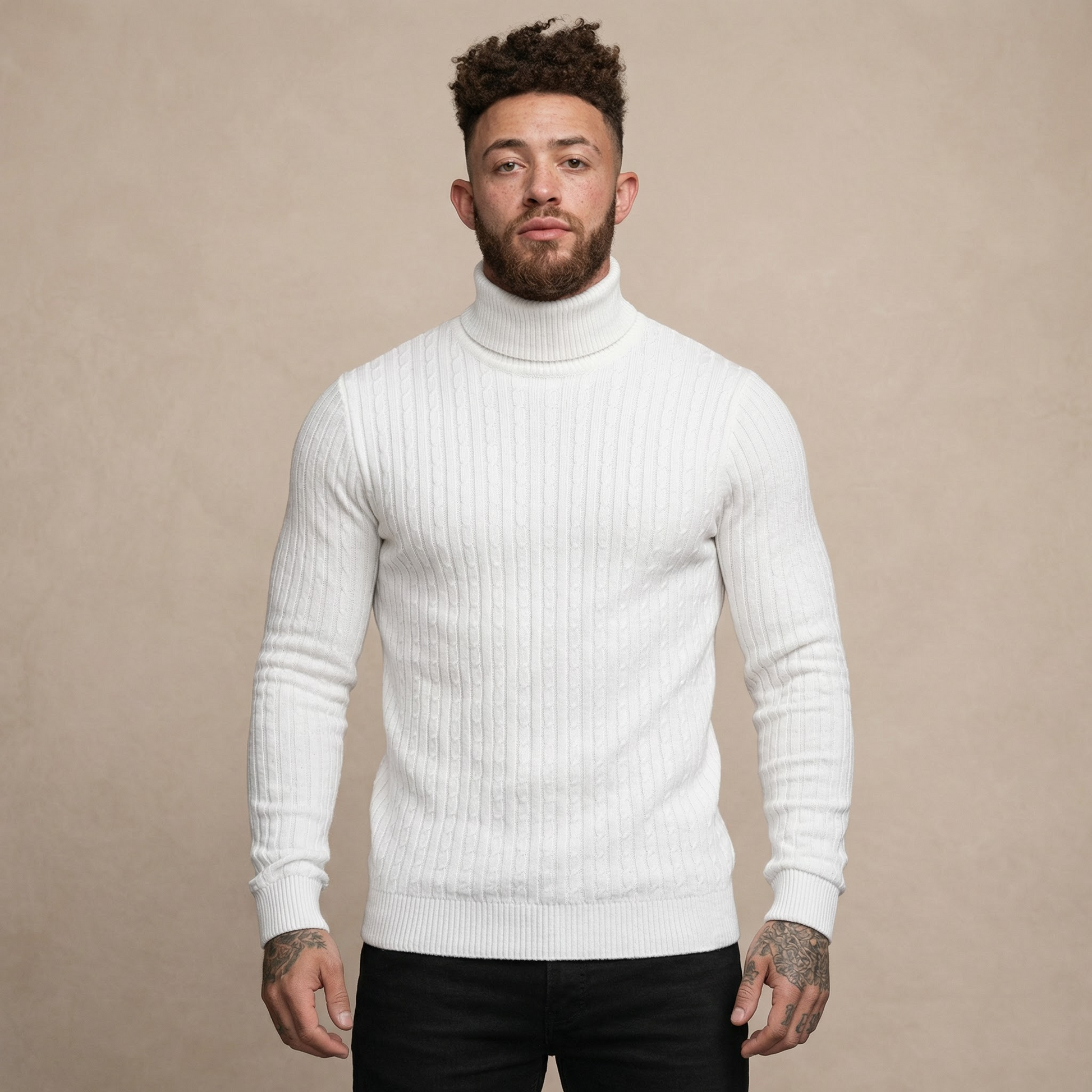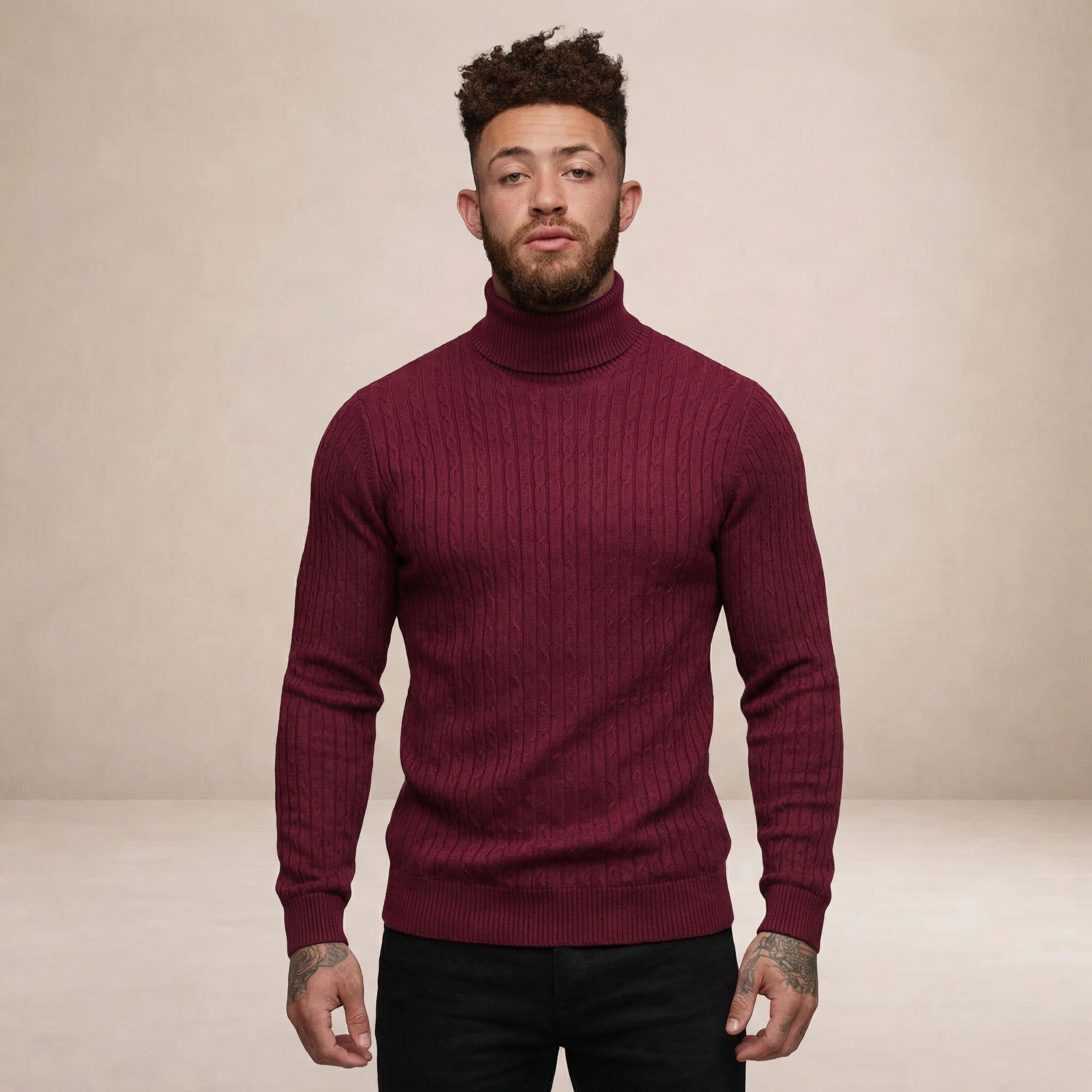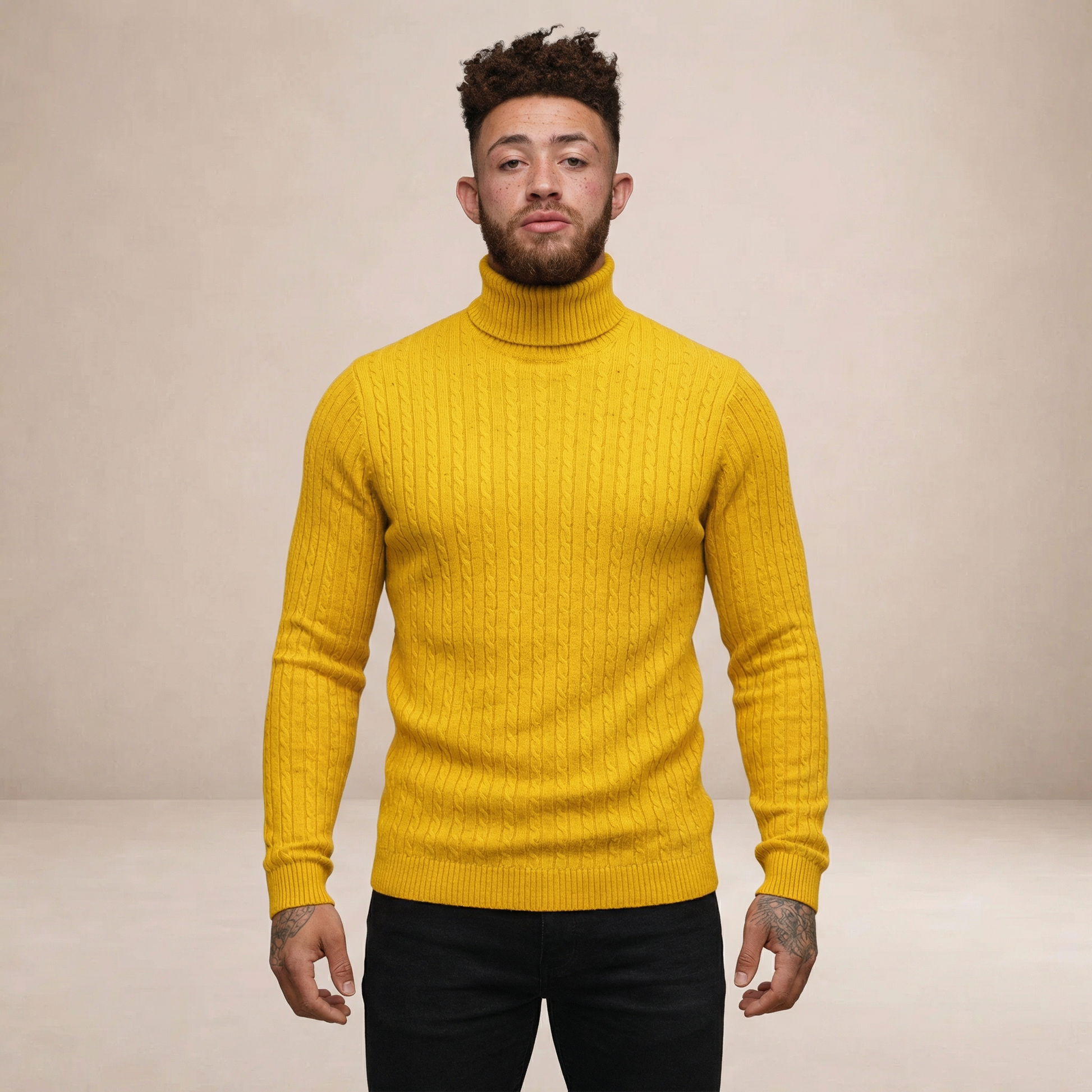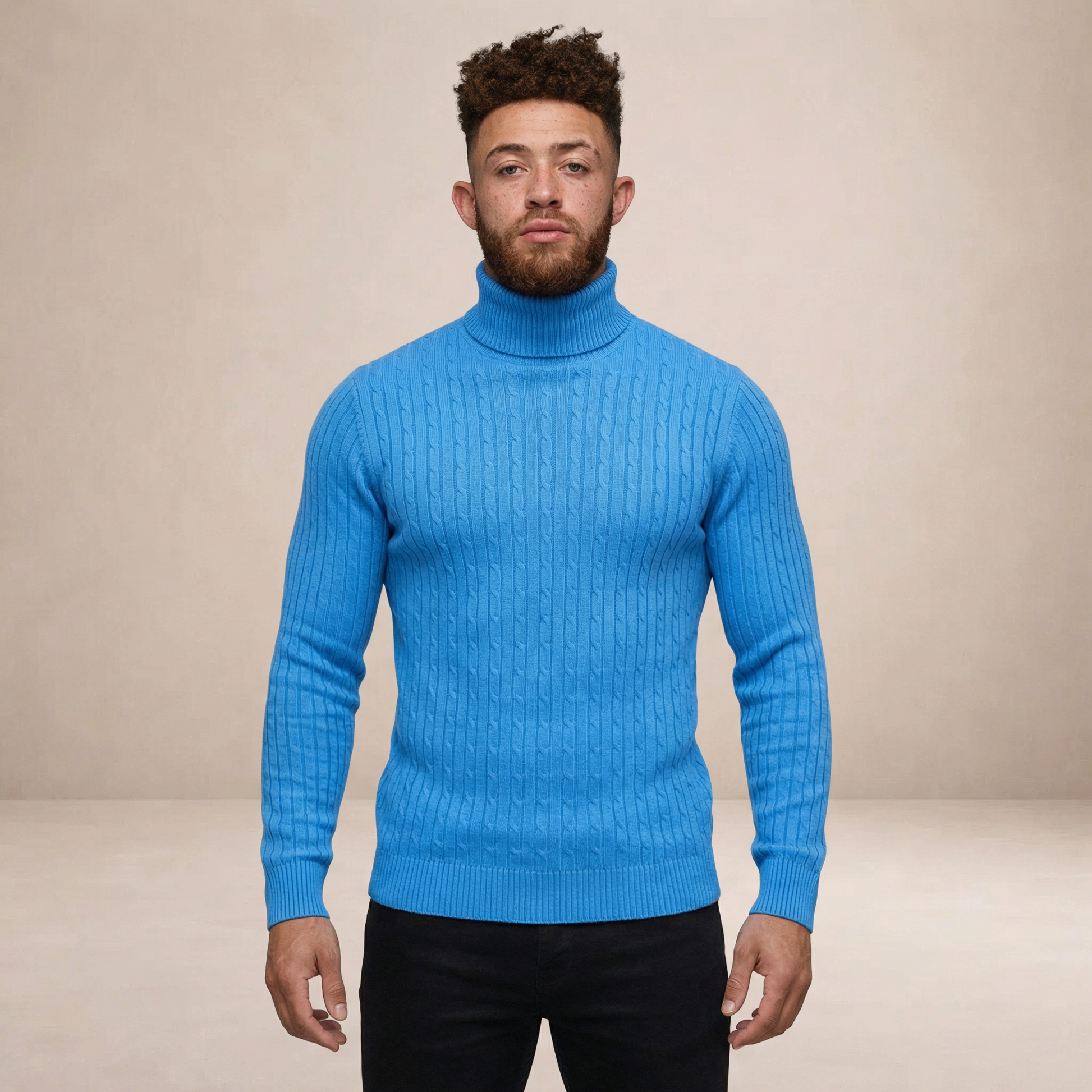 Men’s Slim Fit Cable Knit Turtleneck Jumper