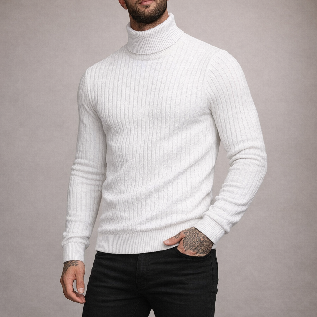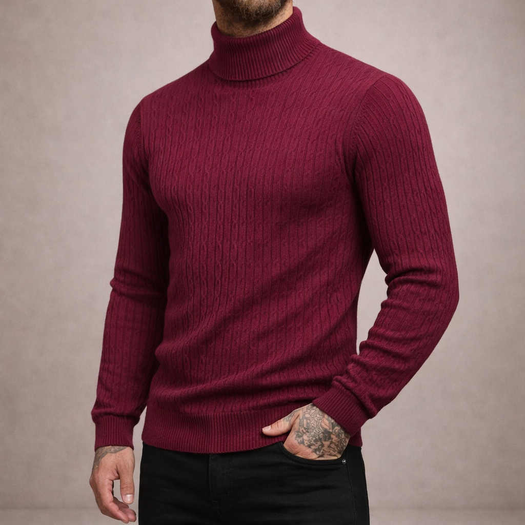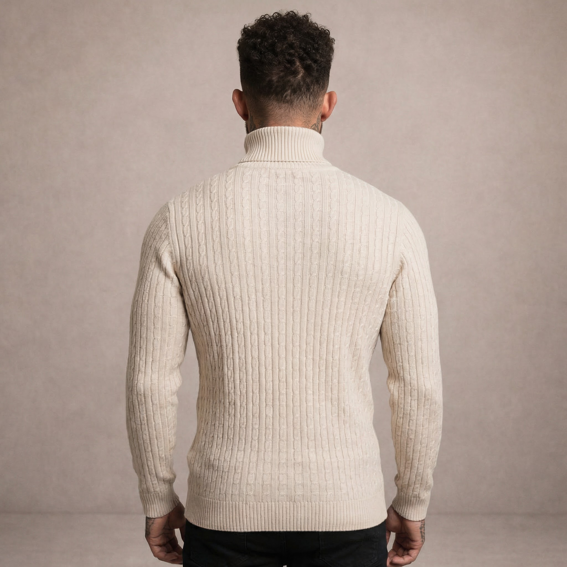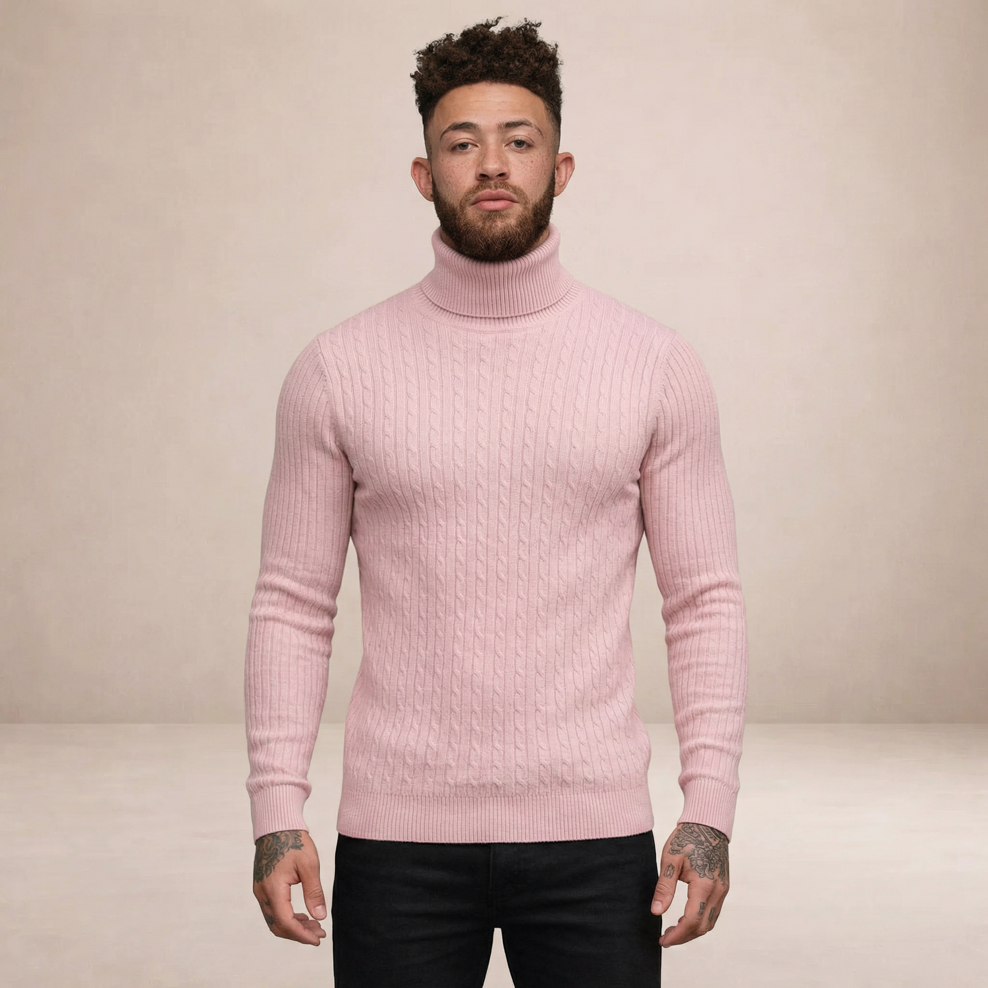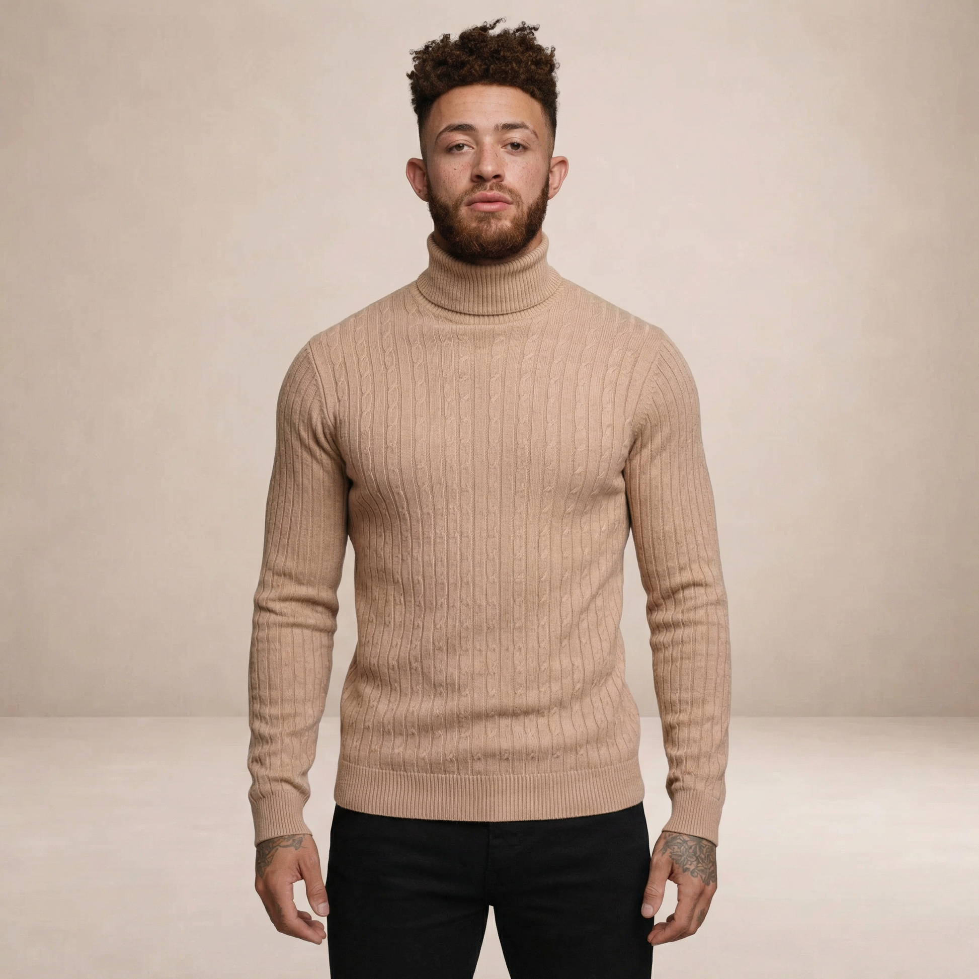 Men’s Slim Fit Cable Knit Turtleneck Jumper