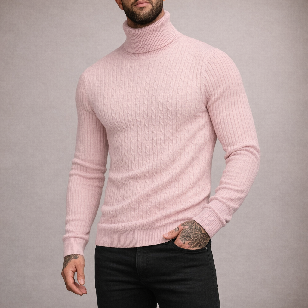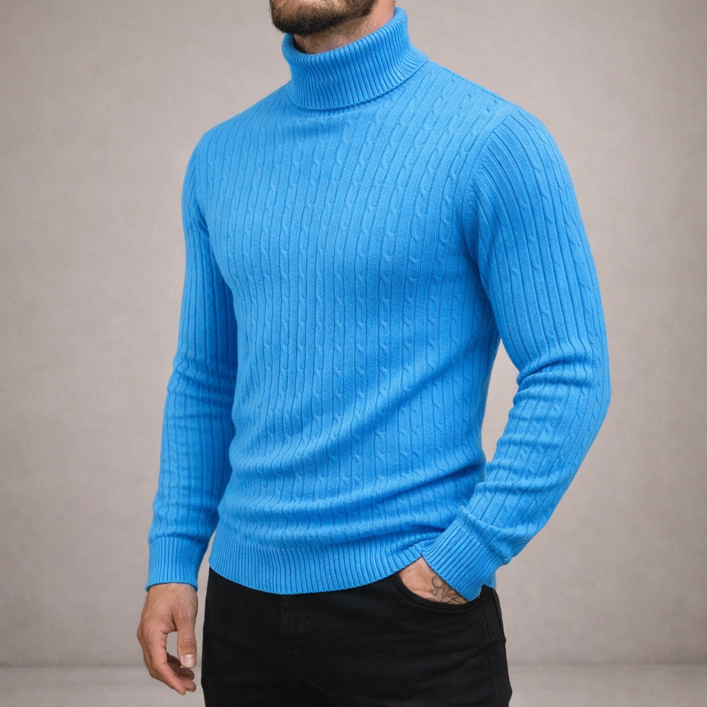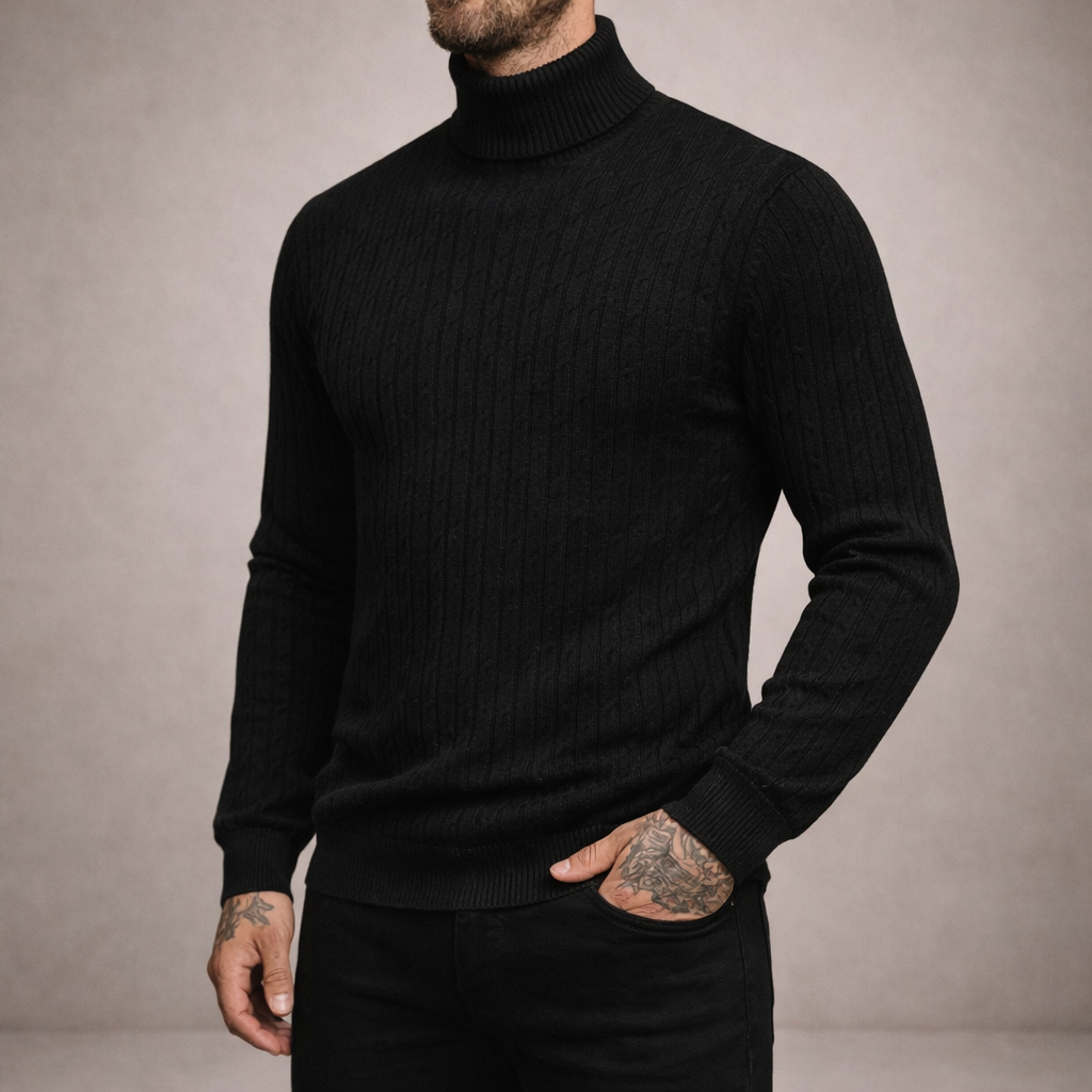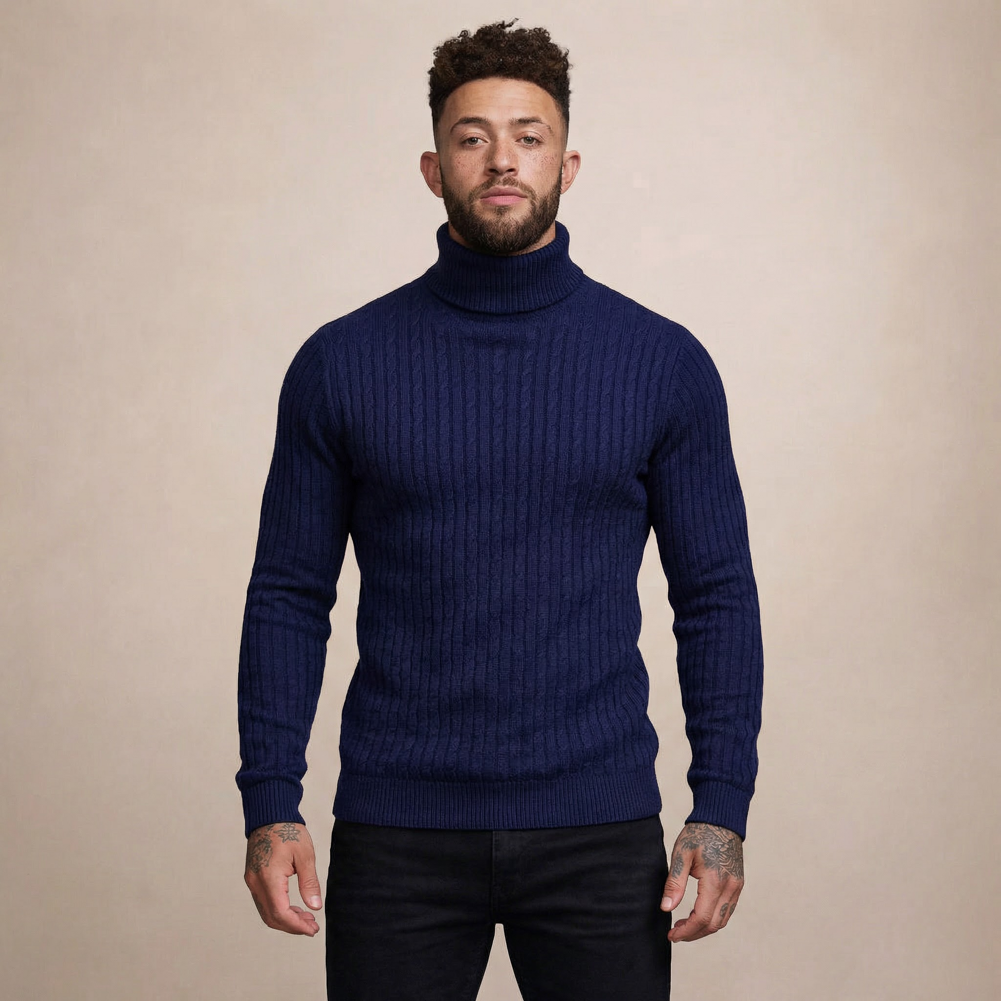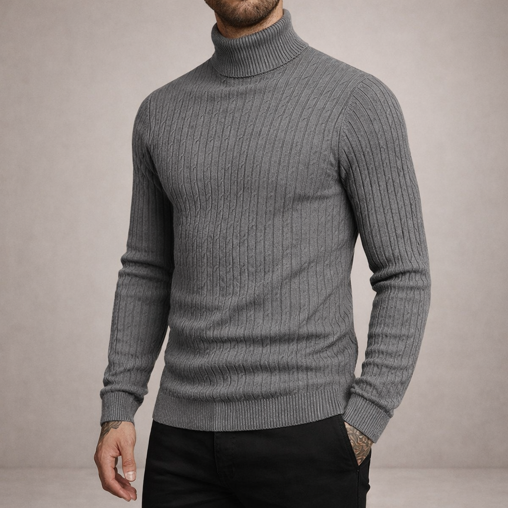 Men’s Slim Fit Cable Knit Turtleneck Jumper