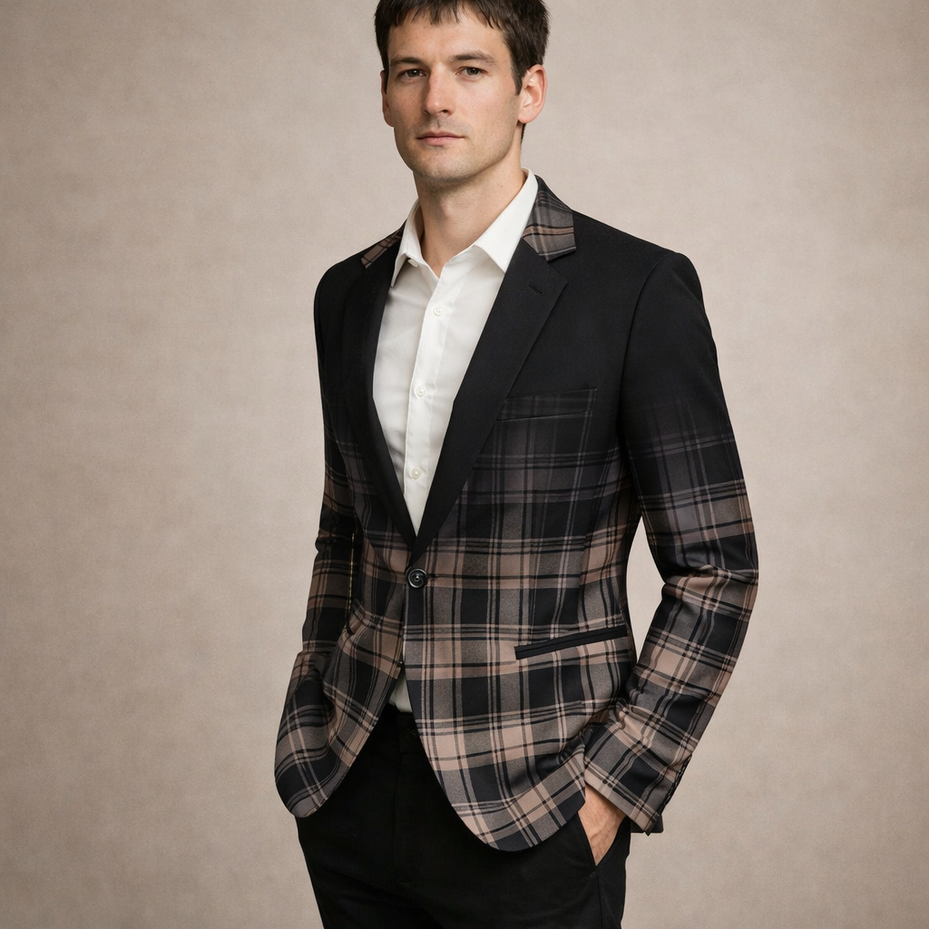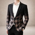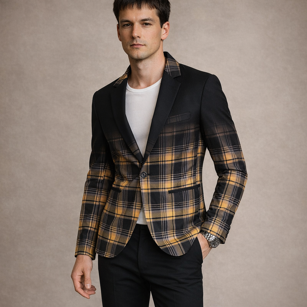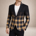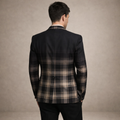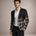 Confident and contemporary, this Men’s Slim Fit Check Blazer in Black and Beige brings modern tailoring to smart-casual dressing. The striking contrast between the solid upper panel and bold check pattern creates a sharp visual statement, ideal for evening events, business-casual settings or refined social occasions. Designed to stand out while remaining versatile, it pairs effortlessly with tailored trousers or dark denim.