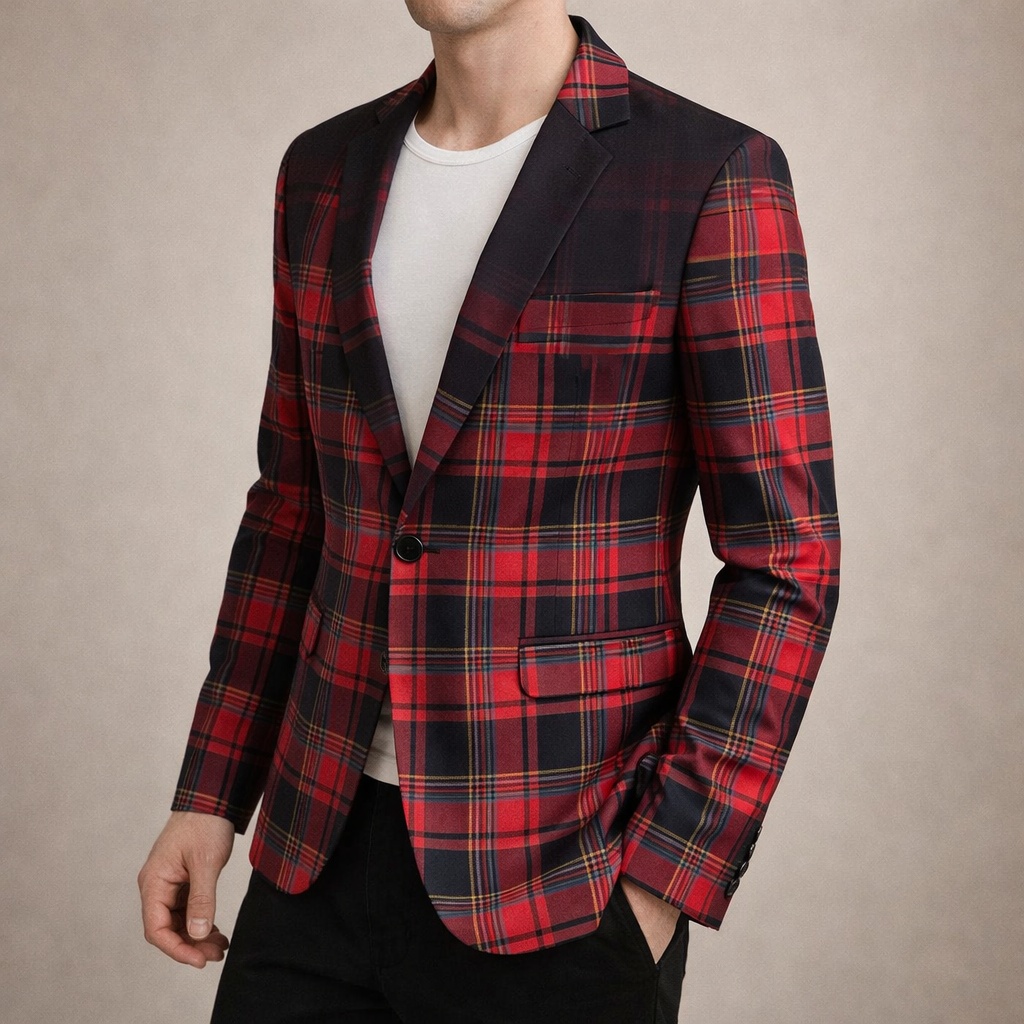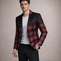 Men’s Slim Fit Checked Blazer with Contrast Lapels