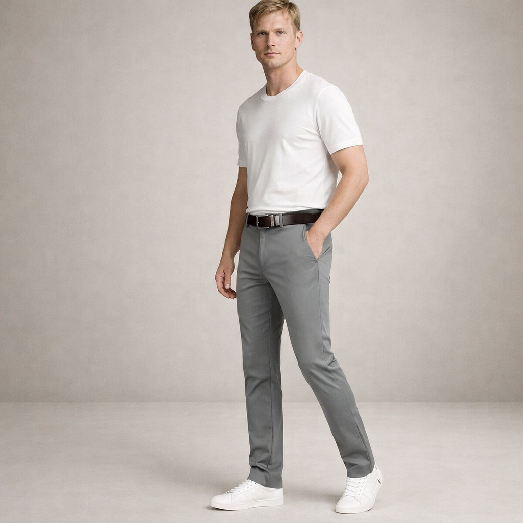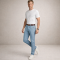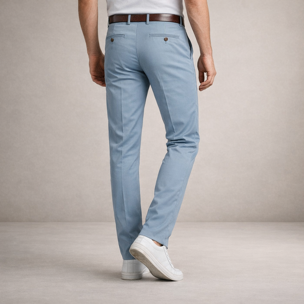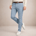 Clean, modern and effortlessly versatile, these men’s light blue chino trousers are designed for refined everyday dressing. The soft pastel tone adds a fresh touch to smart-casual looks, making them ideal for warm-weather occasions, office days or relaxed weekends. Styled with knitwear, shirts or polos, they offer an easy balance between comfort and polish.