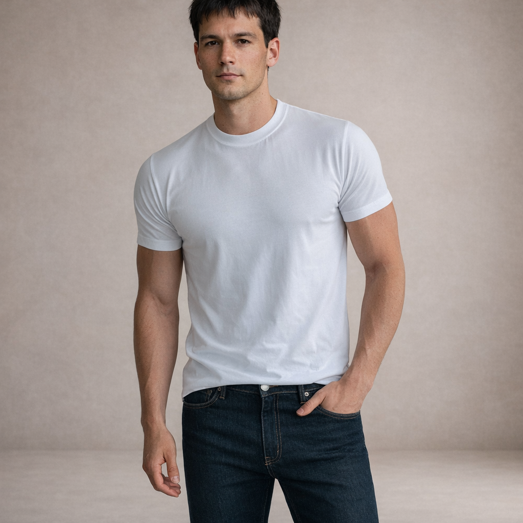 Clean, versatile and effortlessly modern, this Men’s Classic Crew Neck T-Shirt is a wardrobe essential for everyday wear. Its streamlined silhouette and crisp finish make it ideal for layering or wearing on its own in warmer weather.