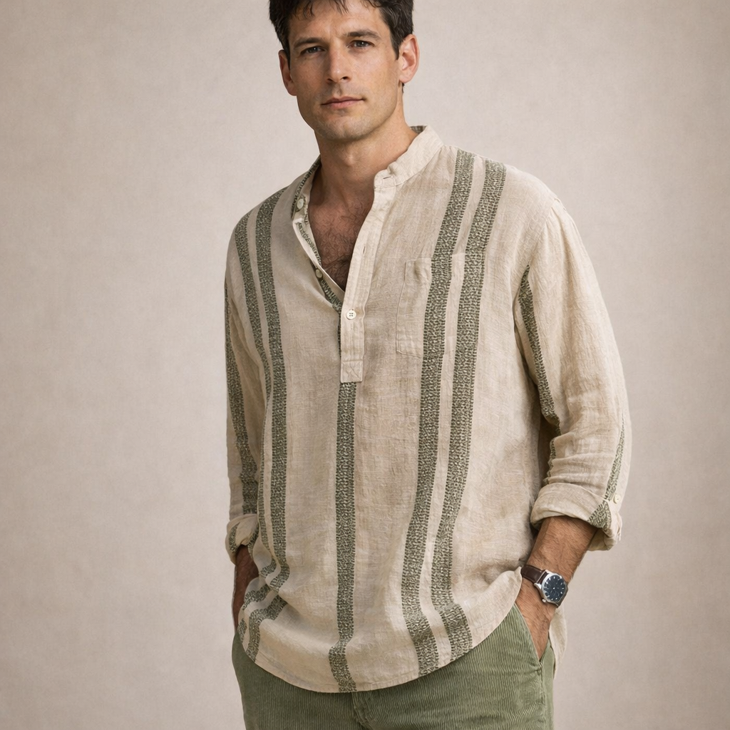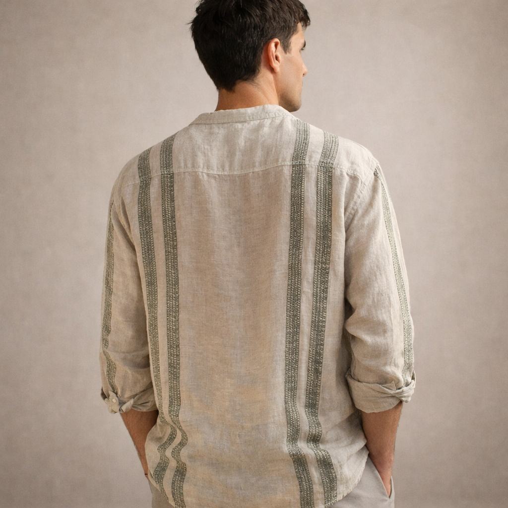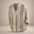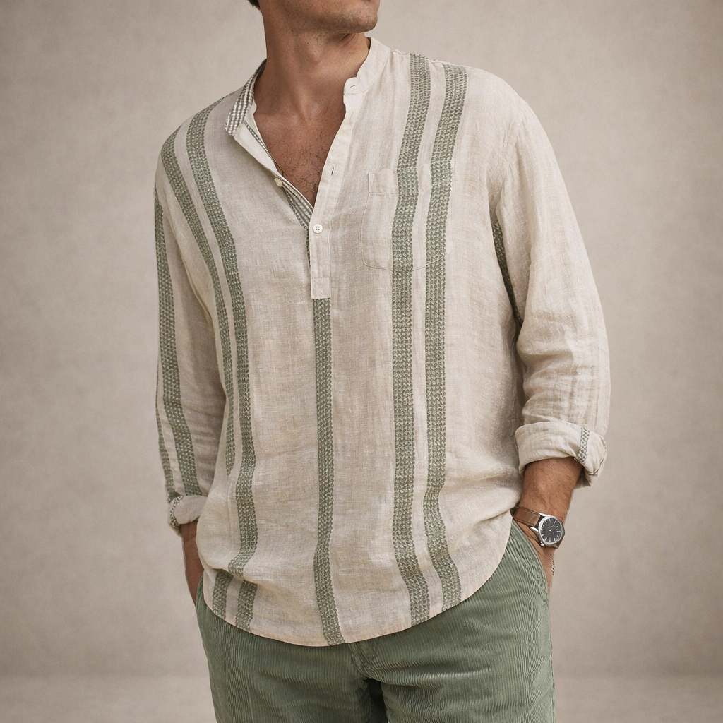 Men’s Striped Linen Blend Grandad Collar Shirt