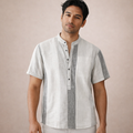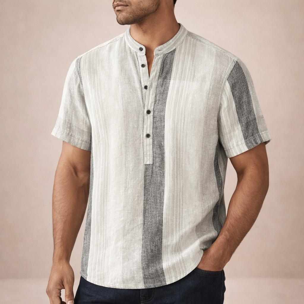 Design: Vertical stripe pattern with a clean, modern finish and a minimalist button placket