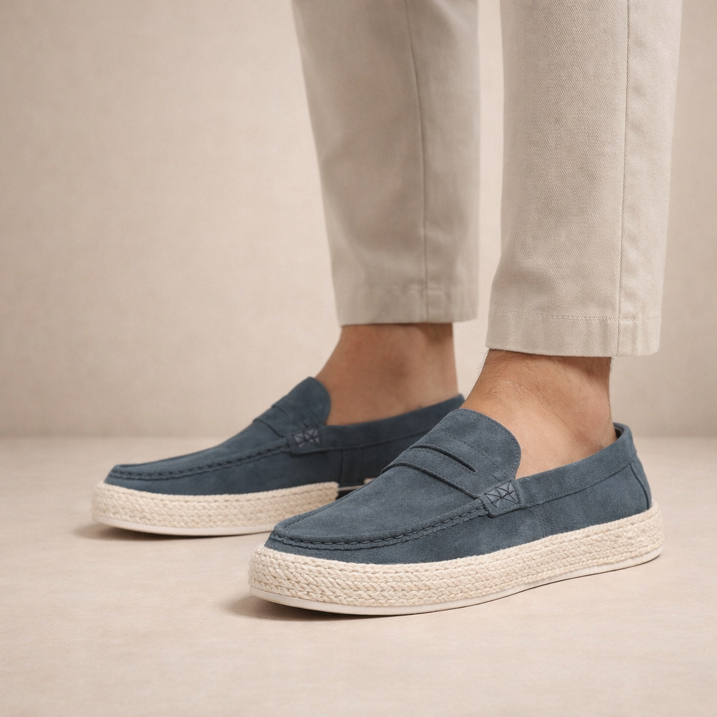 Men’s Suede Slip-On Loafers with Espadrille Sole