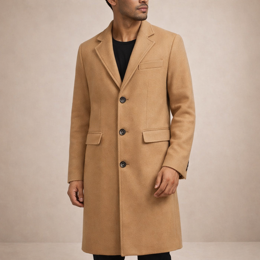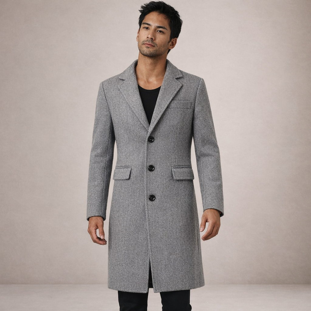 Men’s Tailored Single-Breasted Wool Overcoat with Notch Lapel