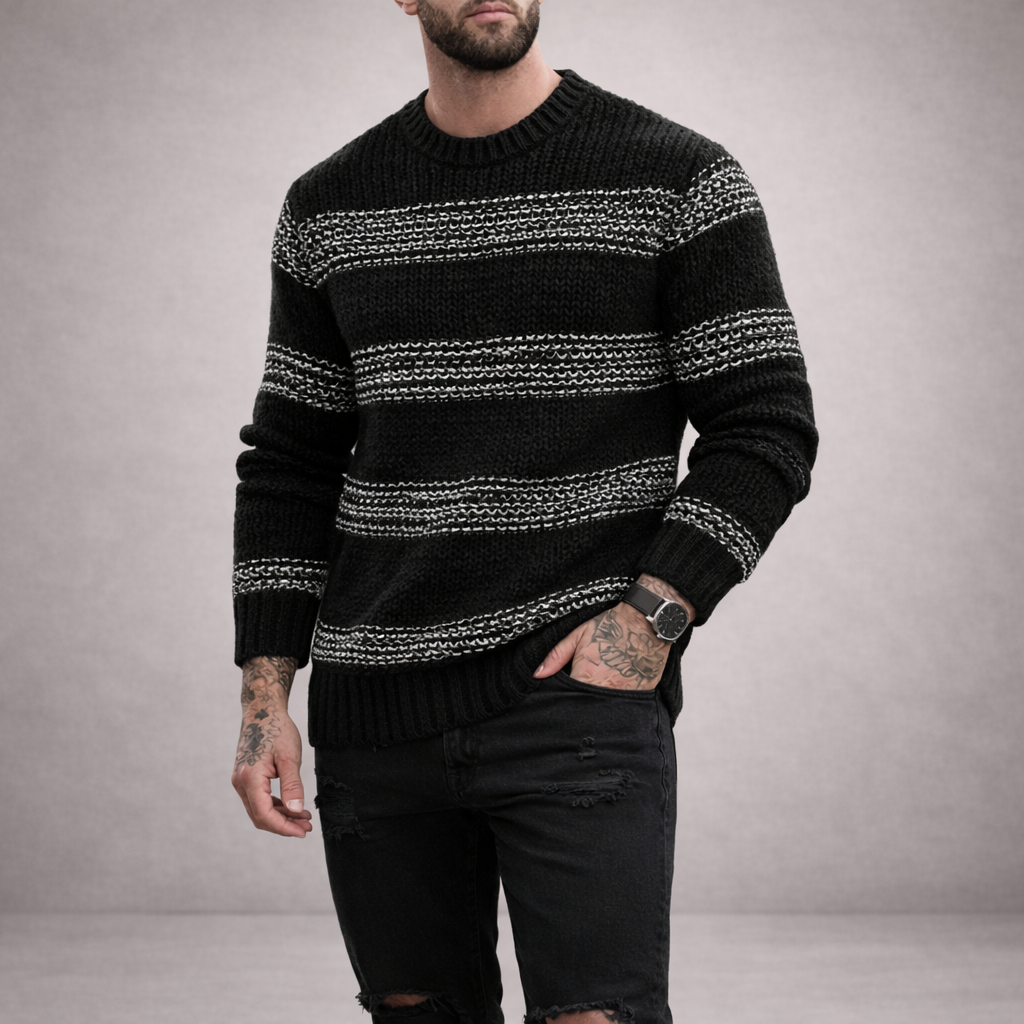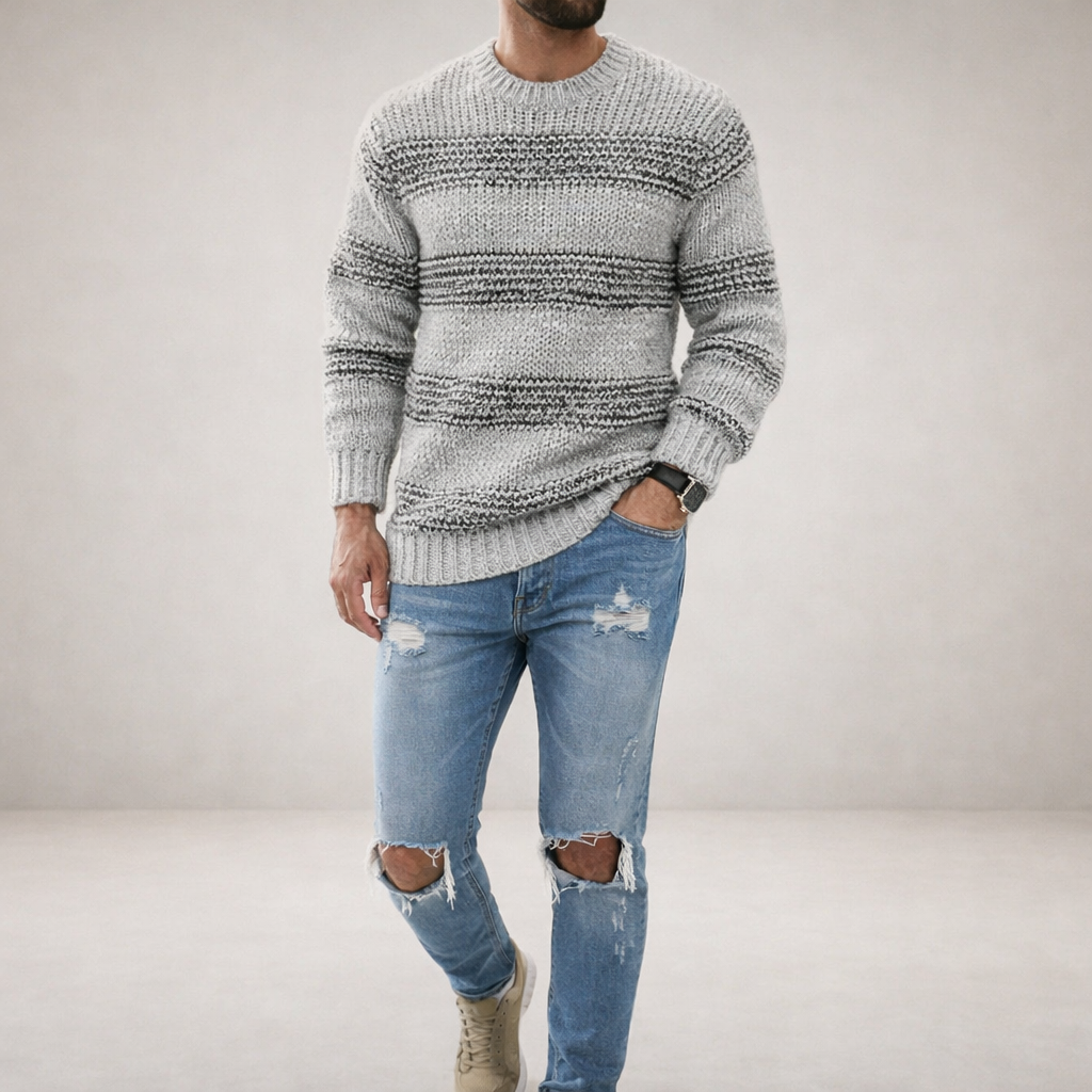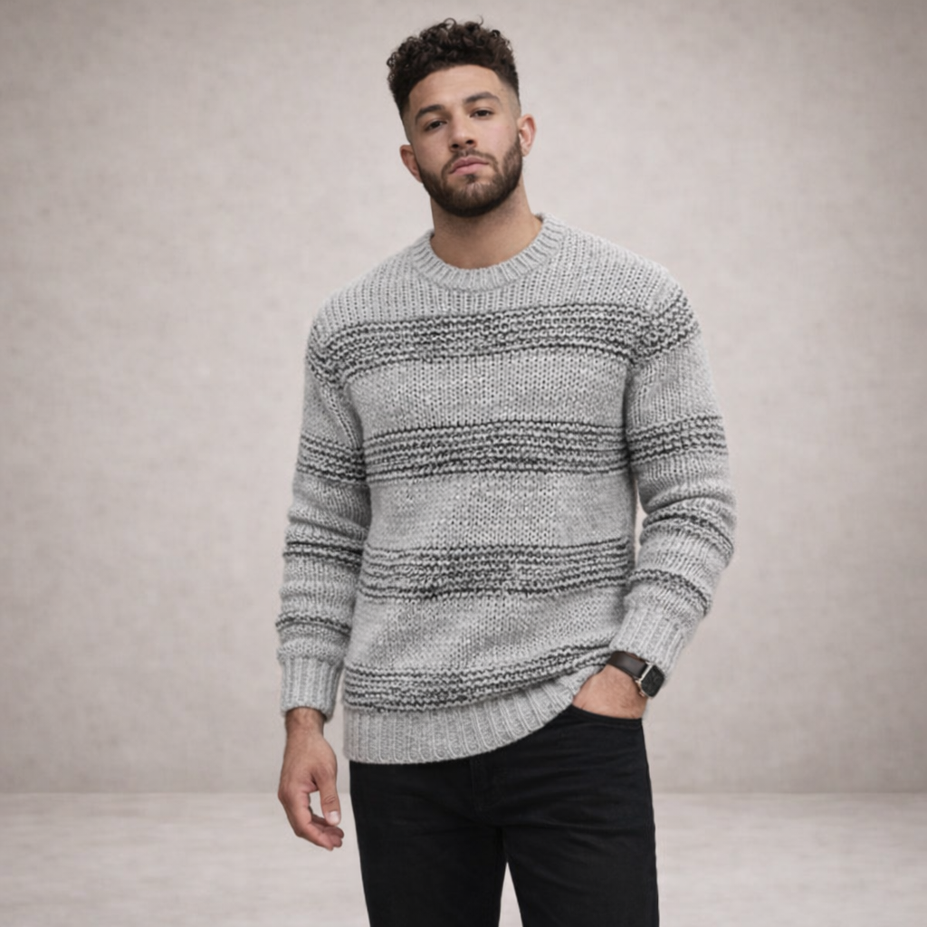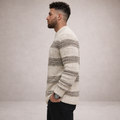 Design: A classic crew neck silhouette enhanced with horizontal textured stripes for a modern, casual look.