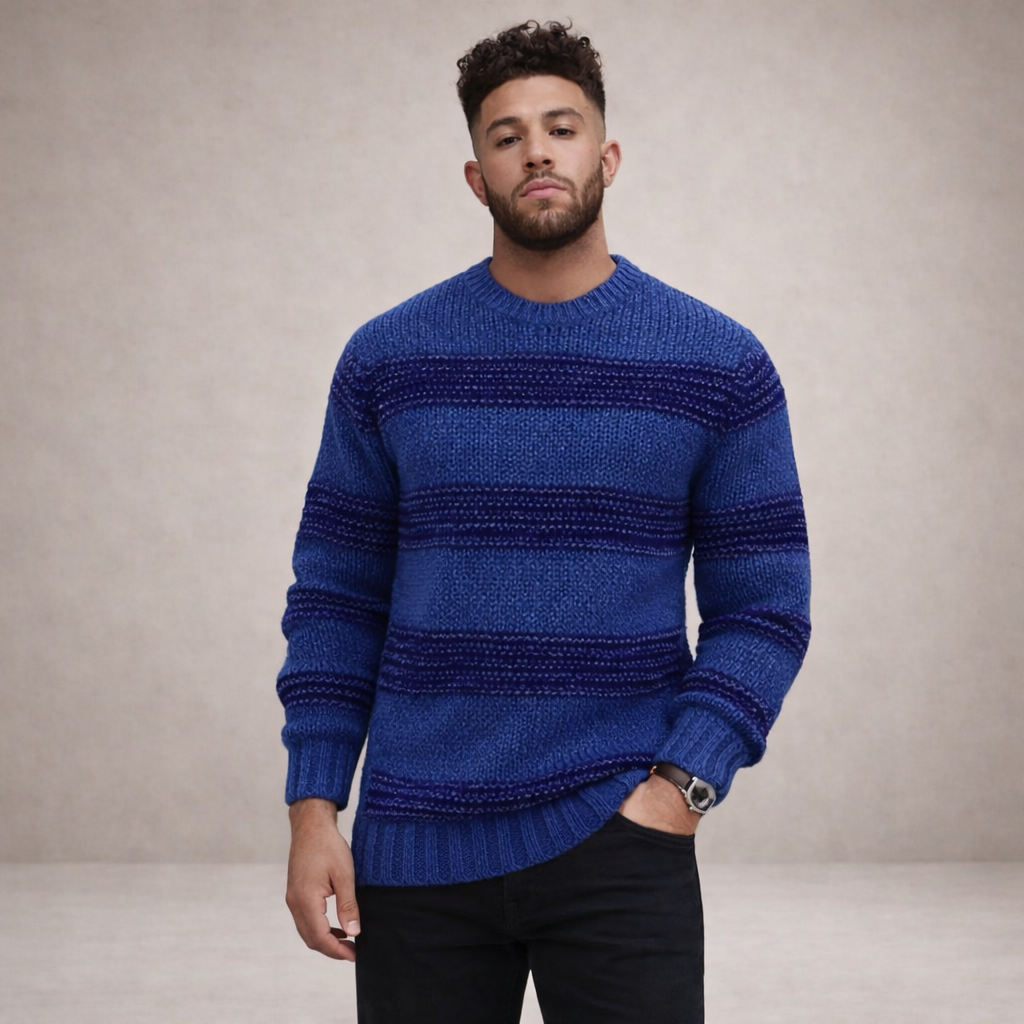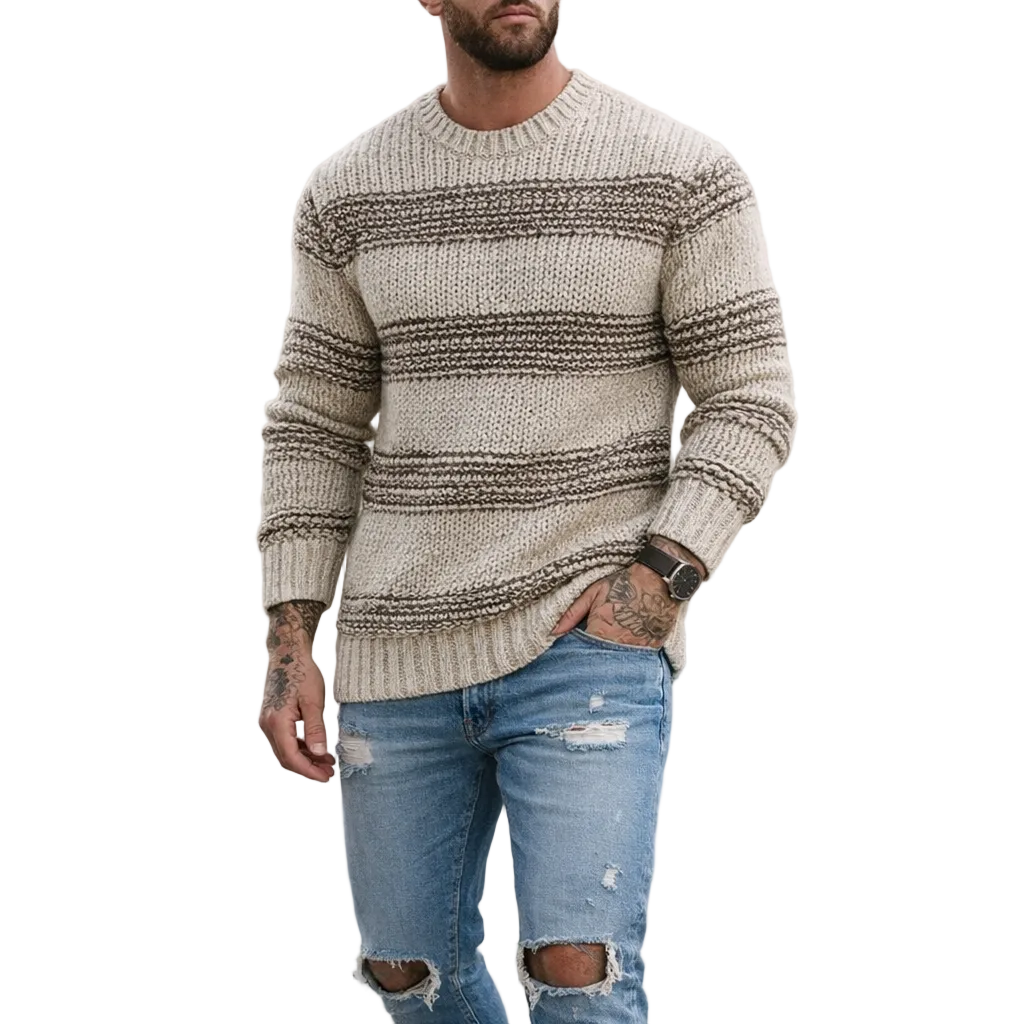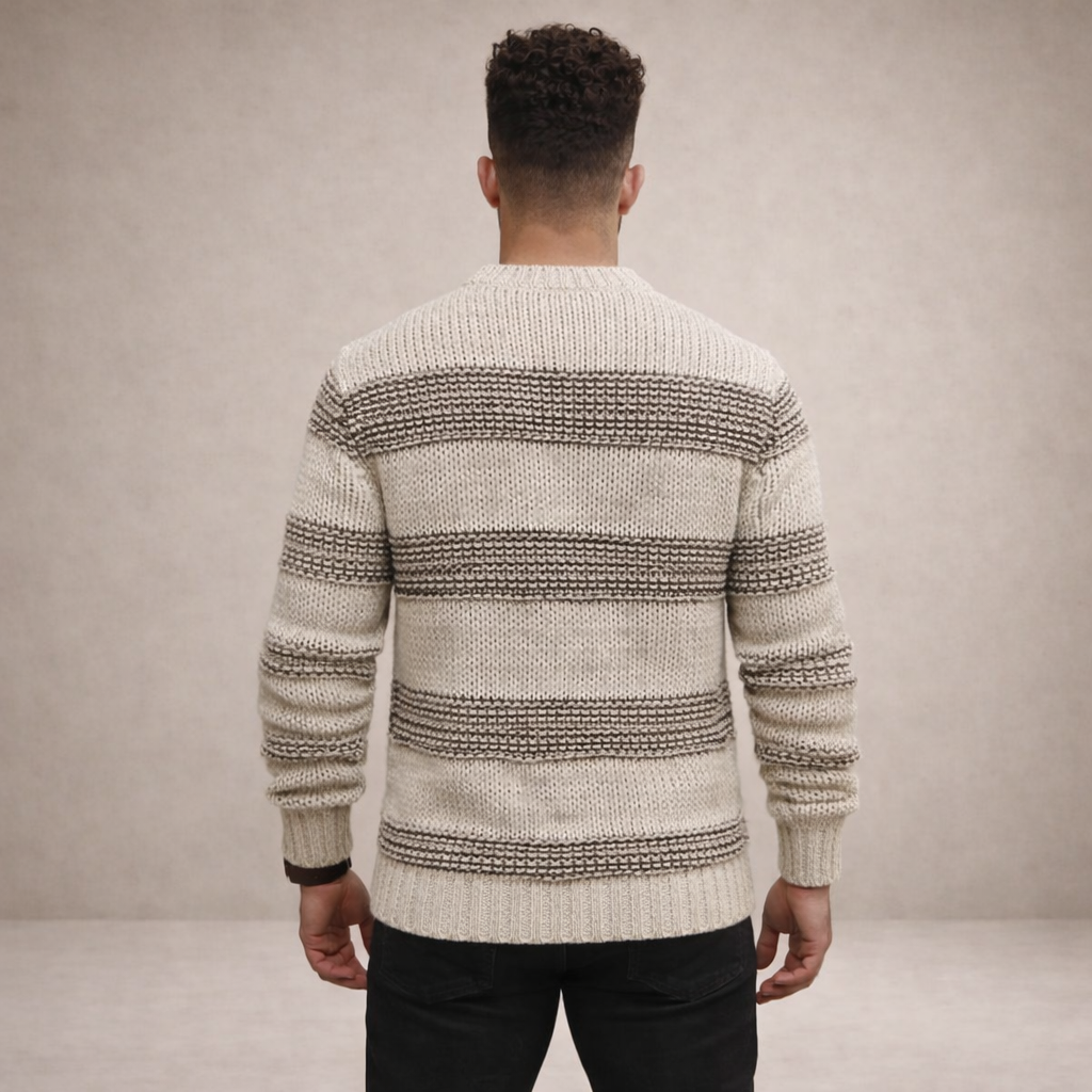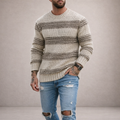 Design: A classic crew neck silhouette enhanced with horizontal textured stripes for a modern, casual look.