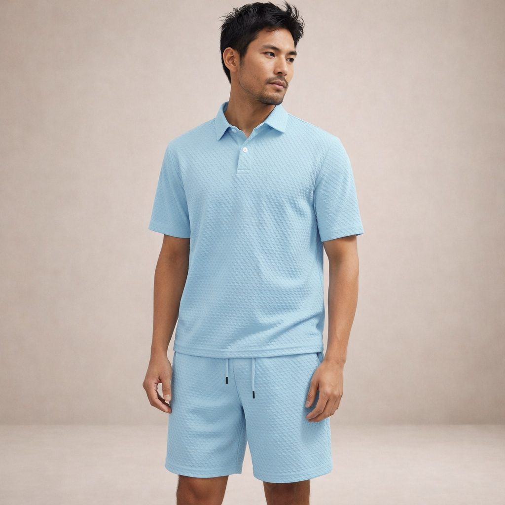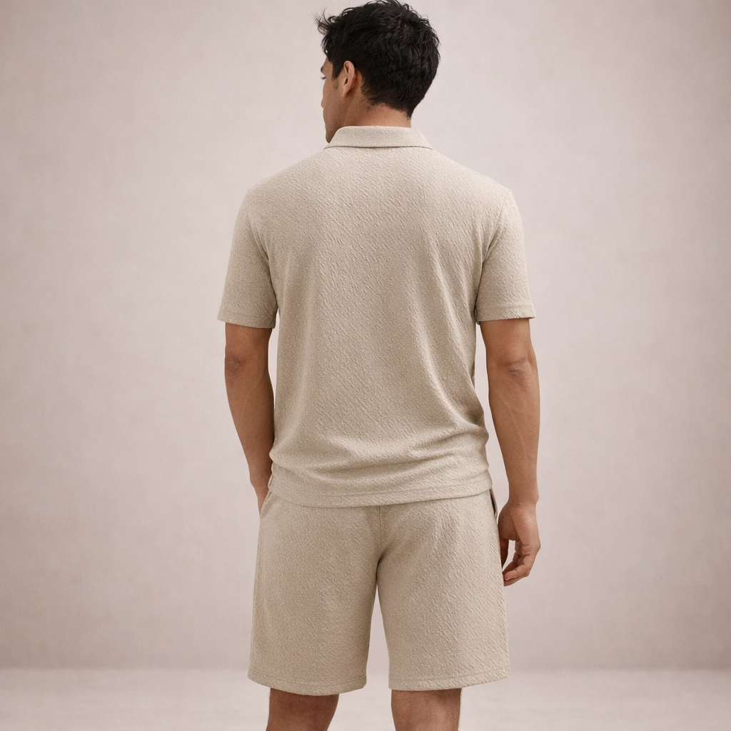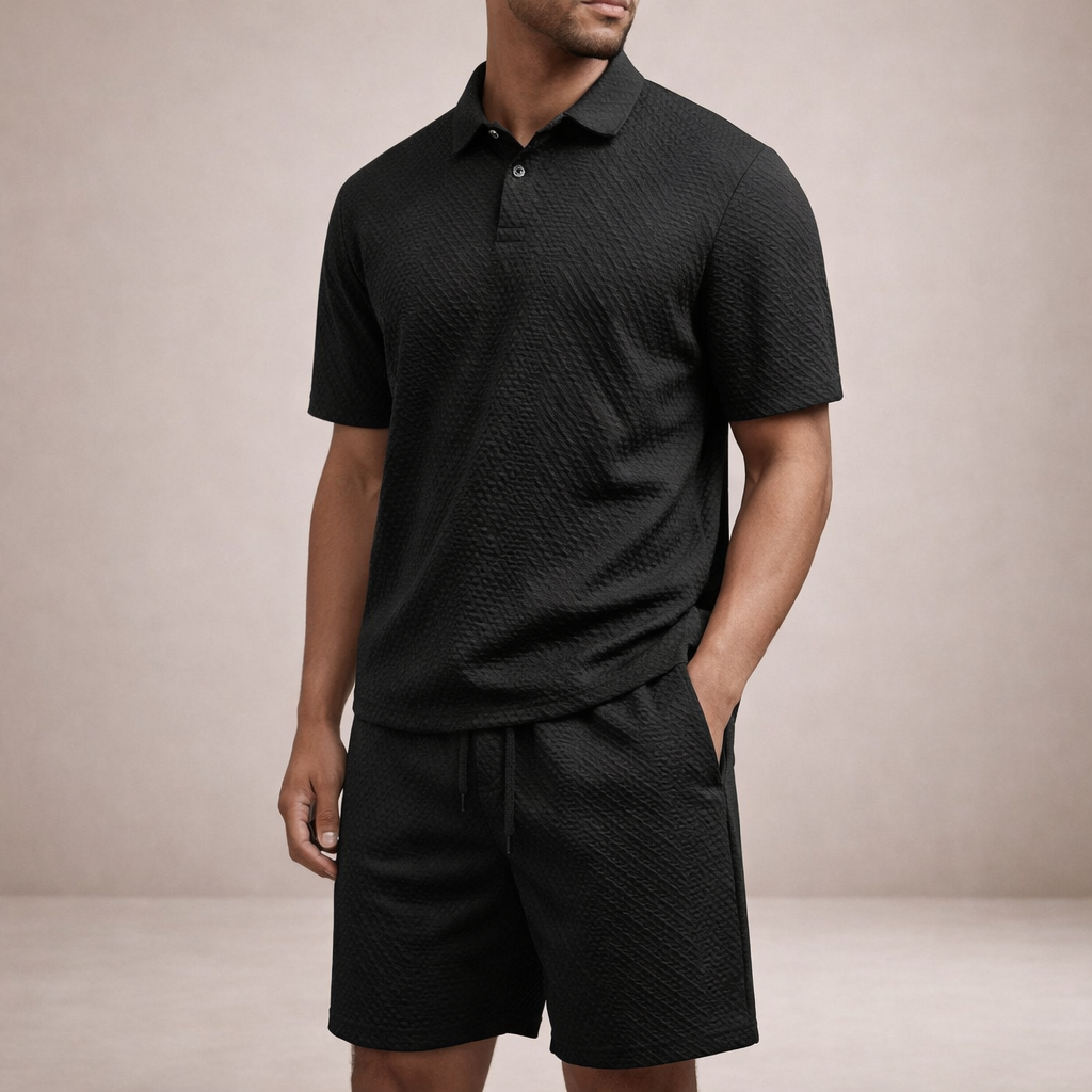 Men’s Textured Polo and Shorts Co-Ord Set