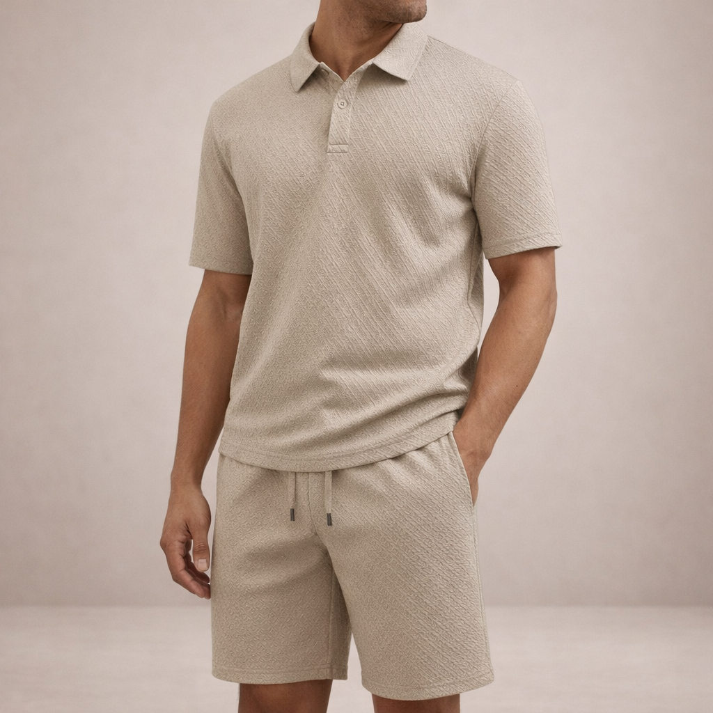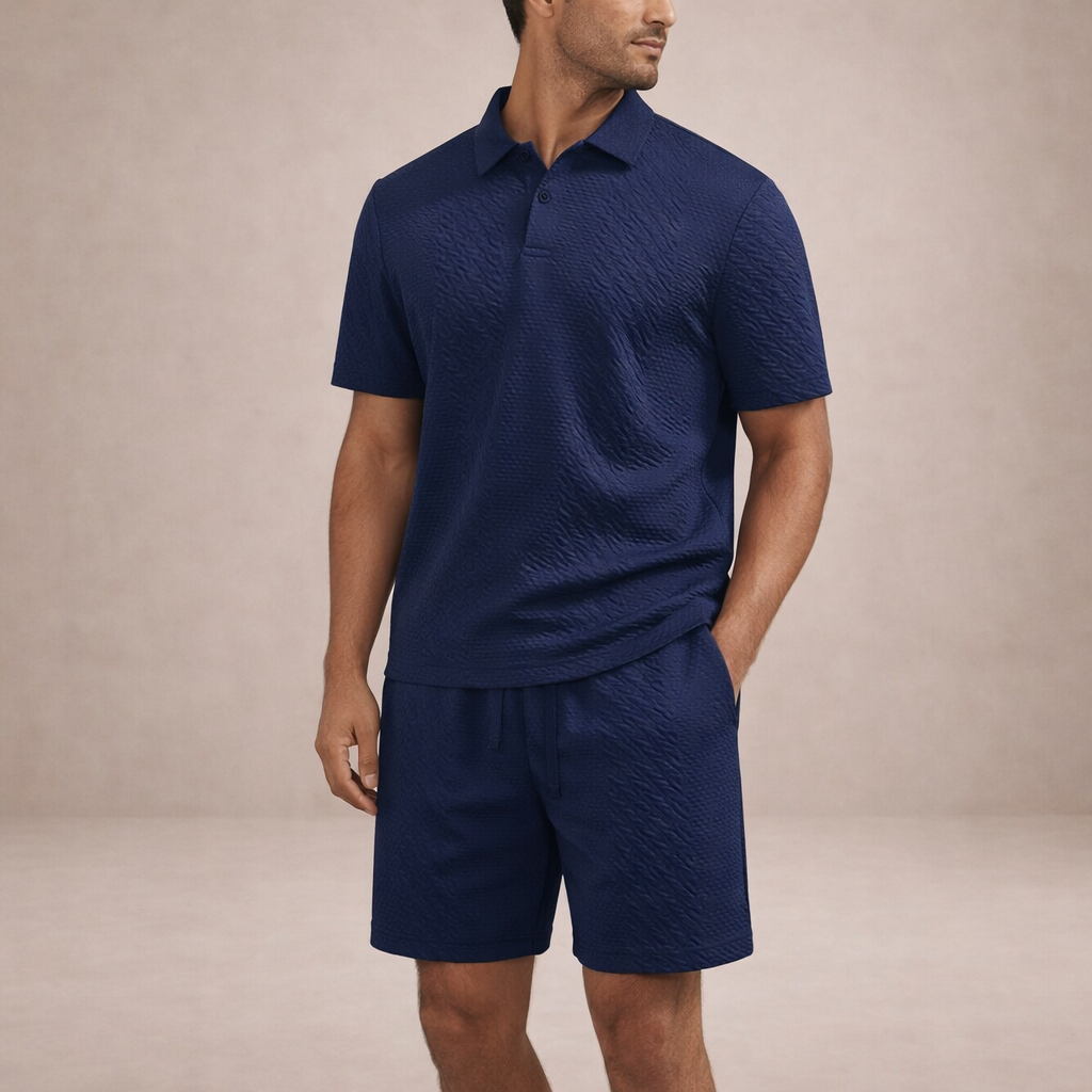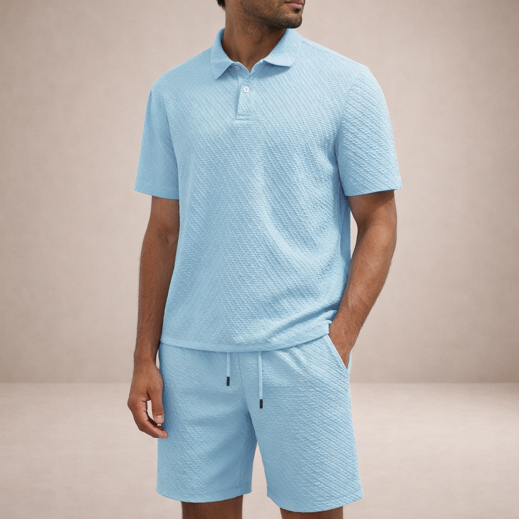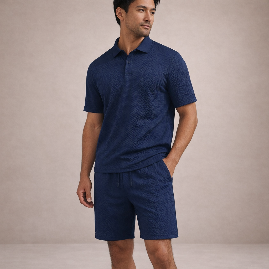 Men’s Textured Polo and Shorts Co-Ord Set