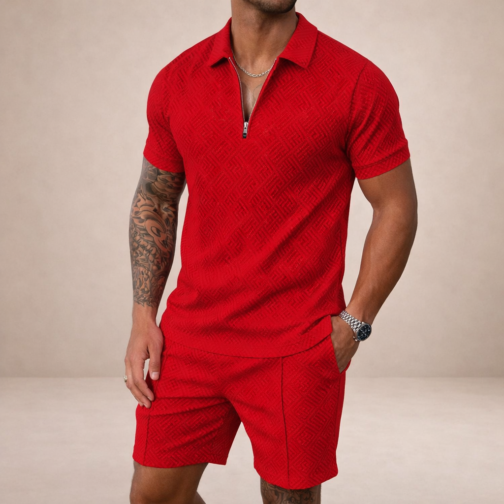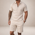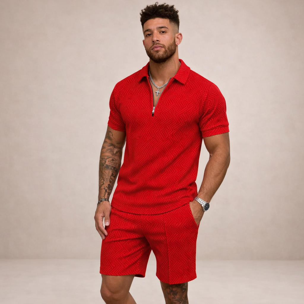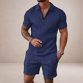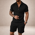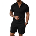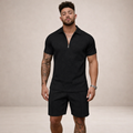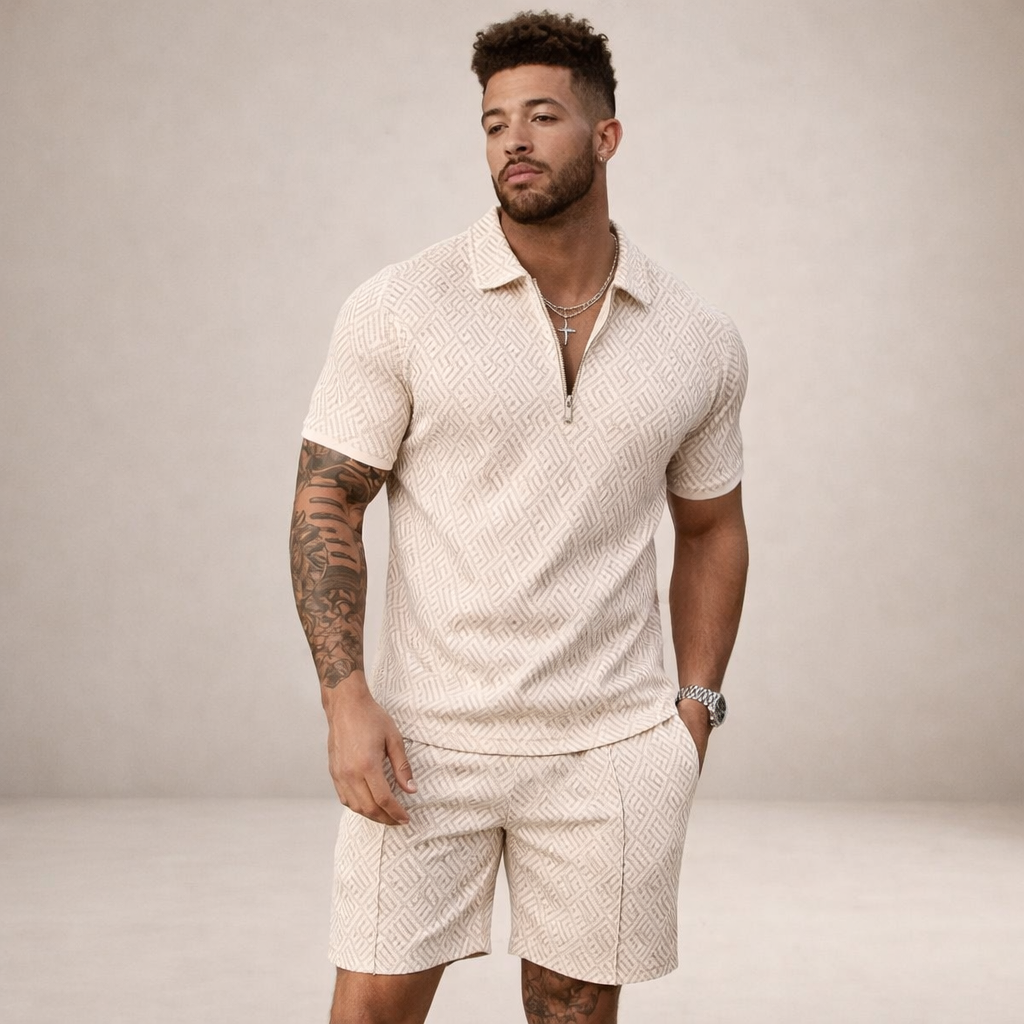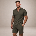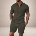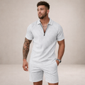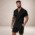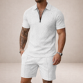Design: Coordinated short-sleeve polo and matching shorts with a refined textured finish and a subtle zip neckline for a contemporary edge.