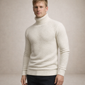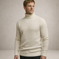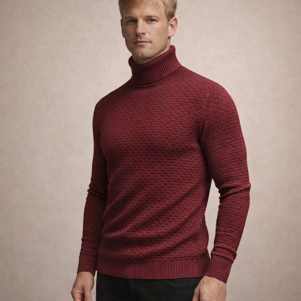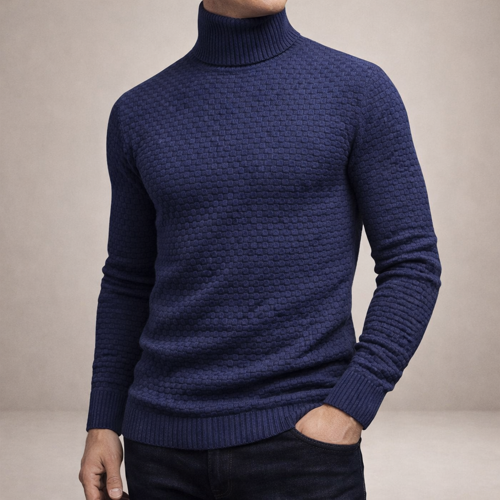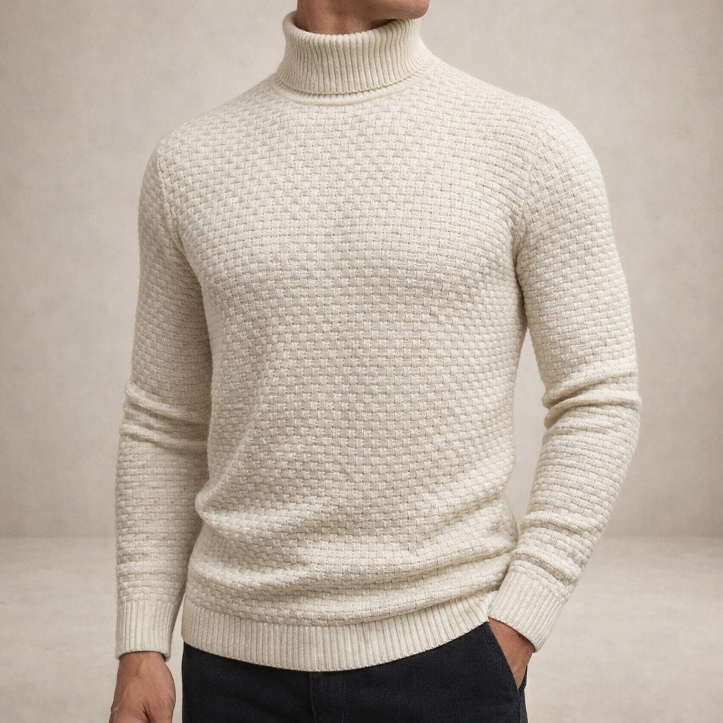 Design: Classic turtleneck with a distinctive grid-like textured pattern