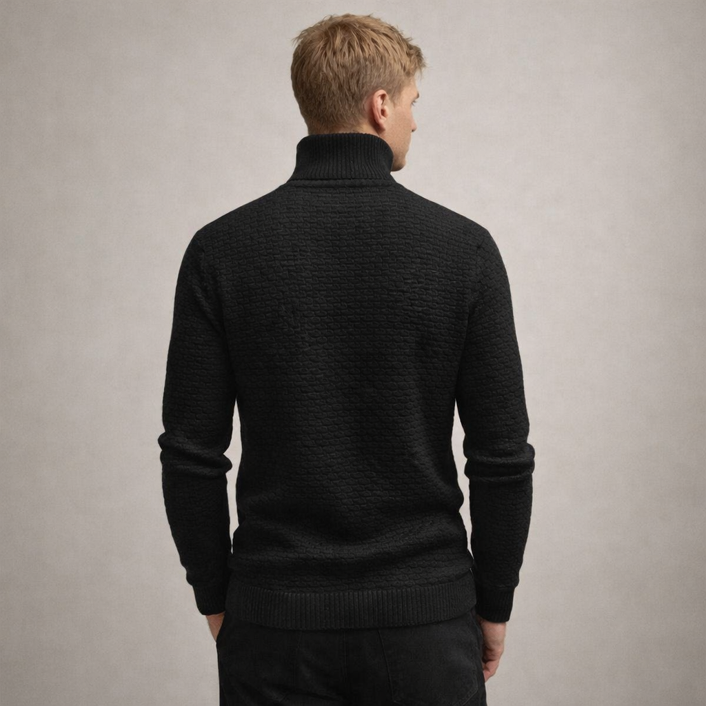 Men’s Textured Turtleneck Sweater with Ribbed Trim