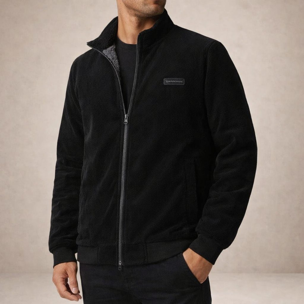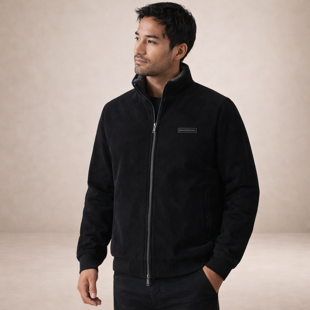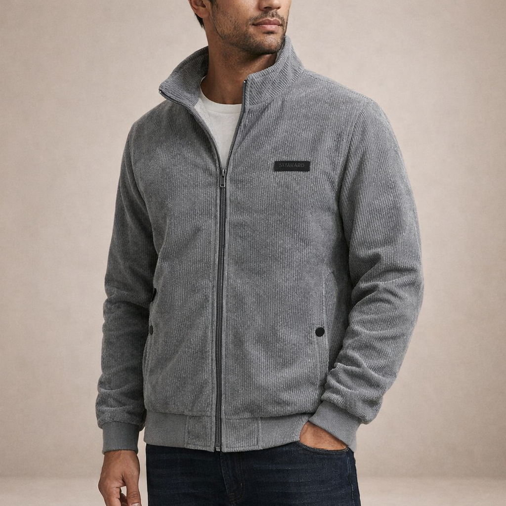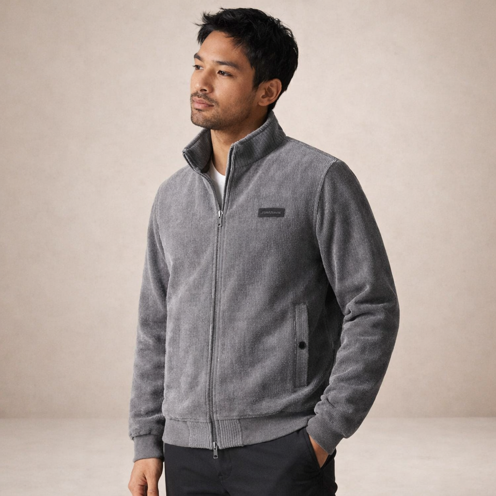 Design: Streamlined design with a stand collar and full front zip for a neat, modern appearance
