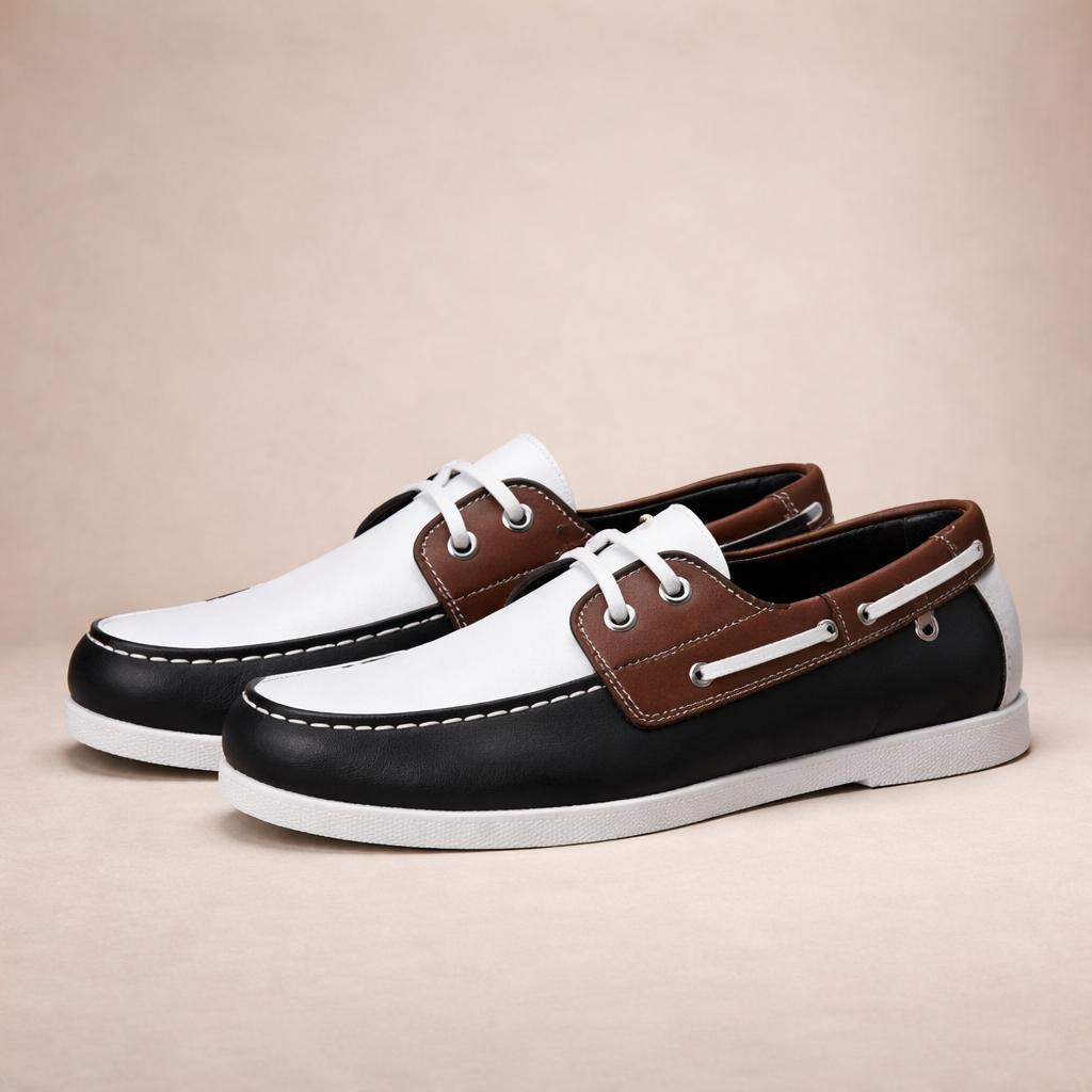 Design: Timeless boat-shoe silhouette with a striking contrast upper and visible topstitching for a clean, structured look.