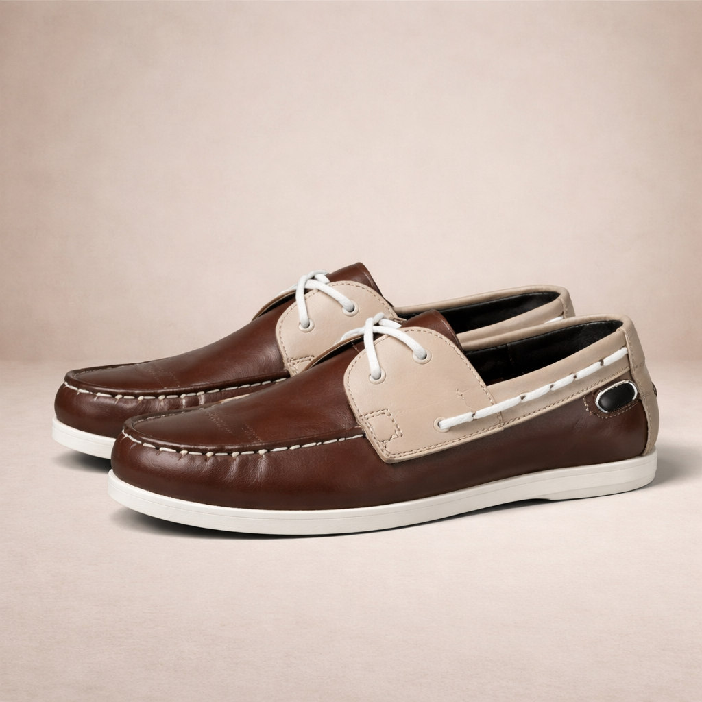 Men’s Two-Tone Boat Shoes with Lace Detail