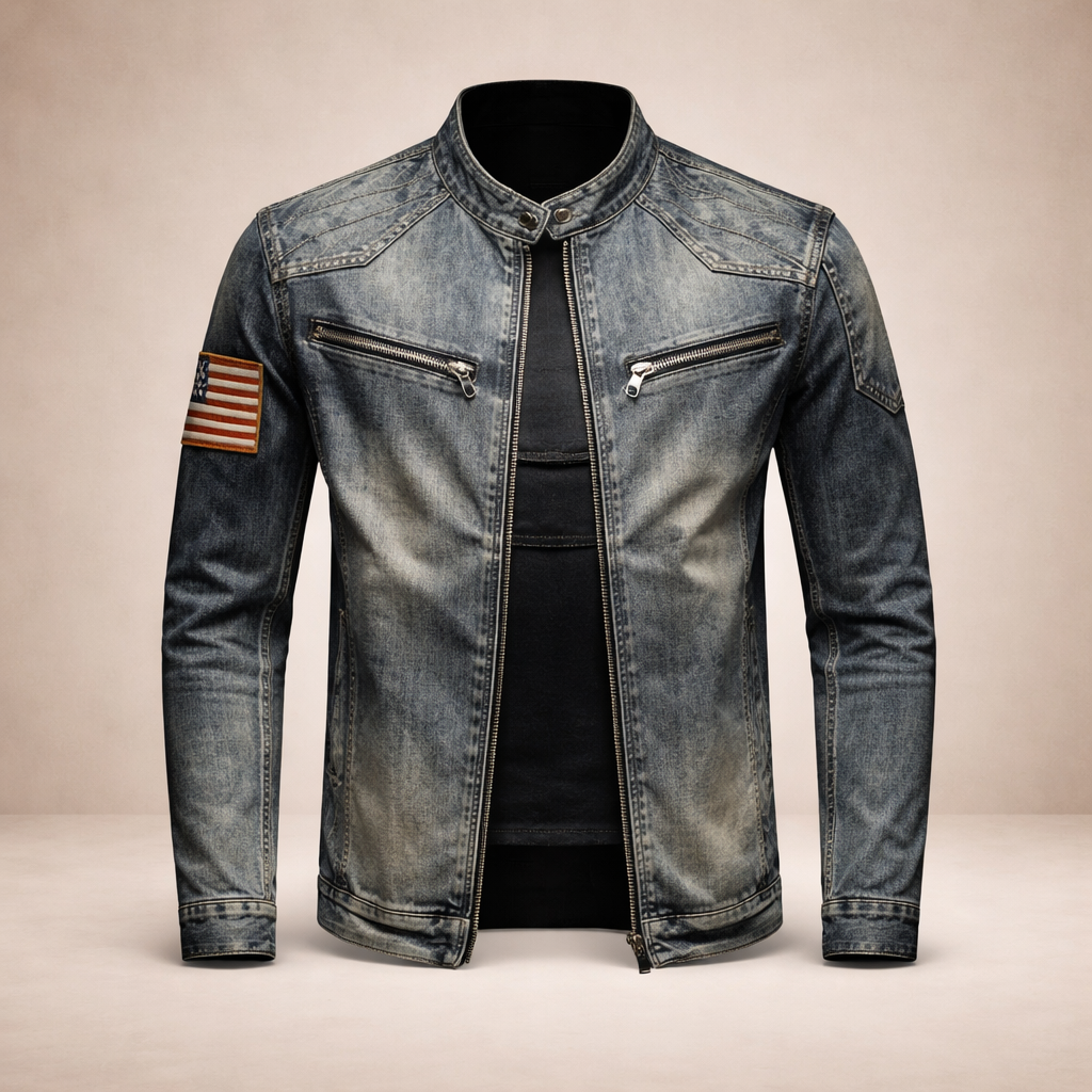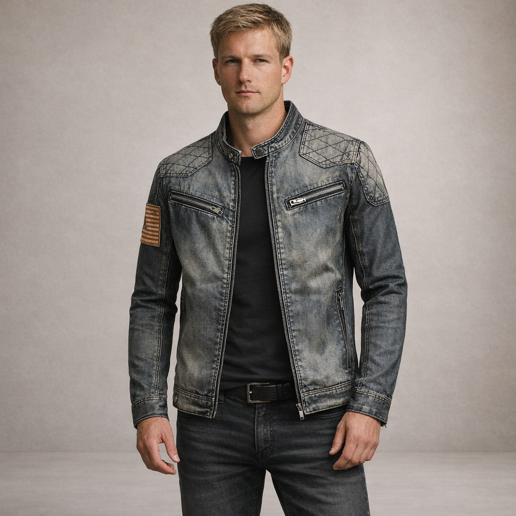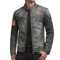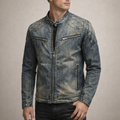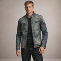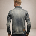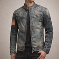 Men’s Washed Denim Biker Jacket with Zip Front Grey
