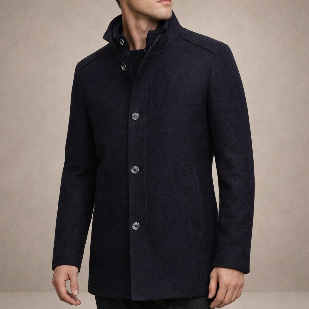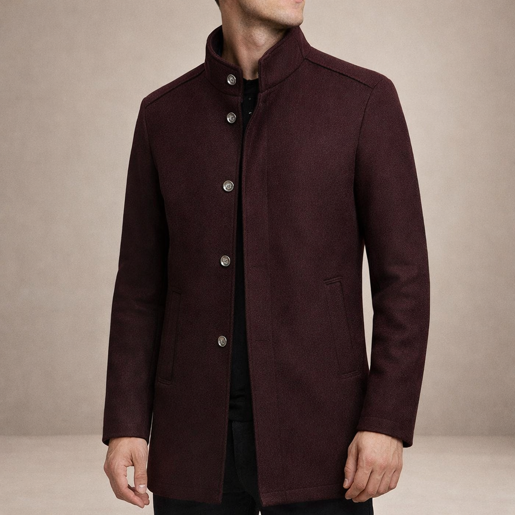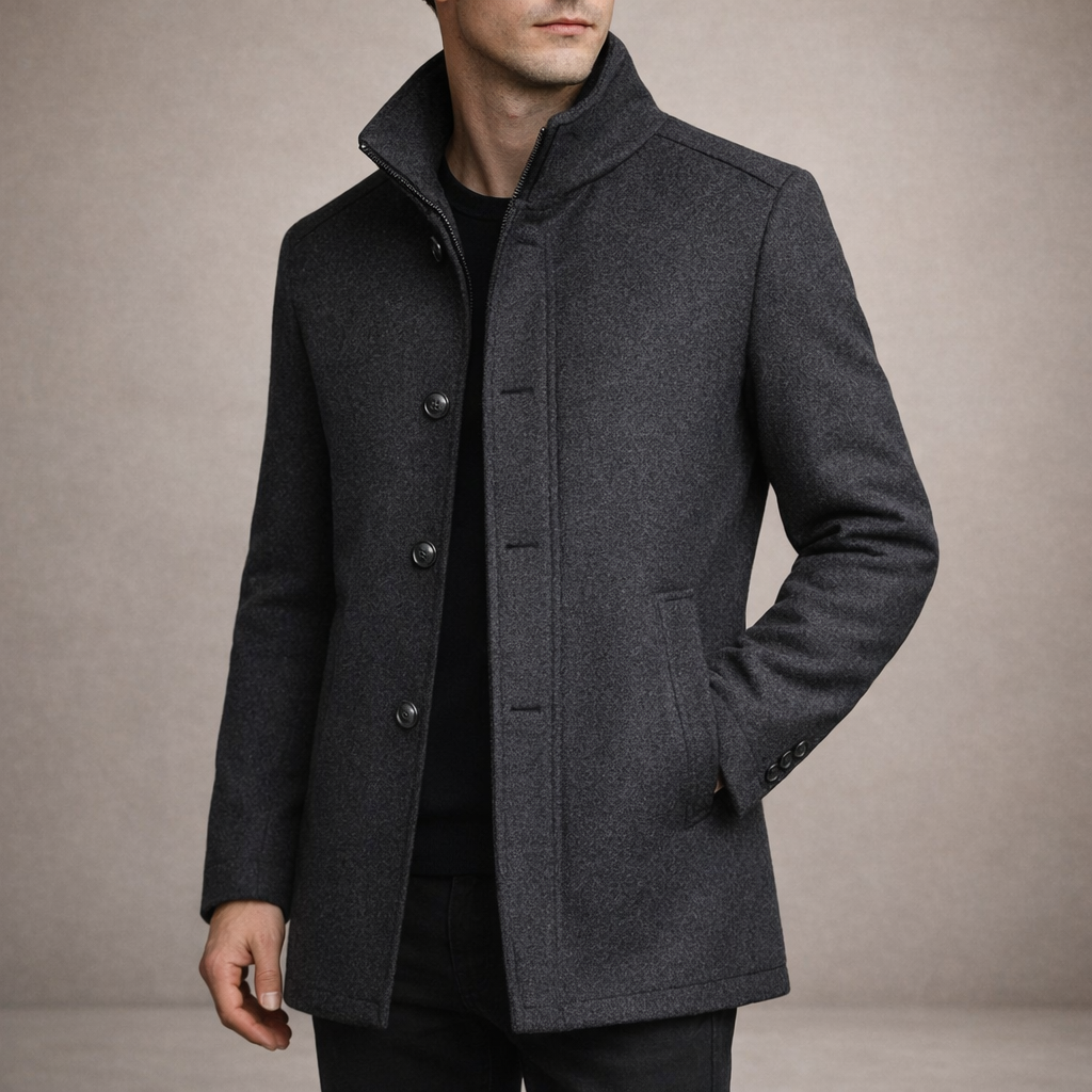 Key features of this Men’s Wool-Blend Stand Collar Coat