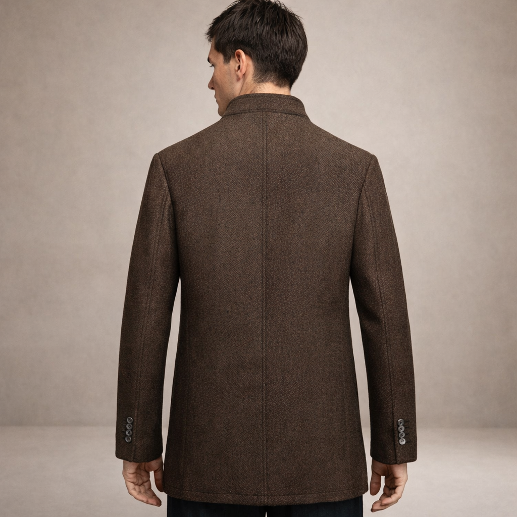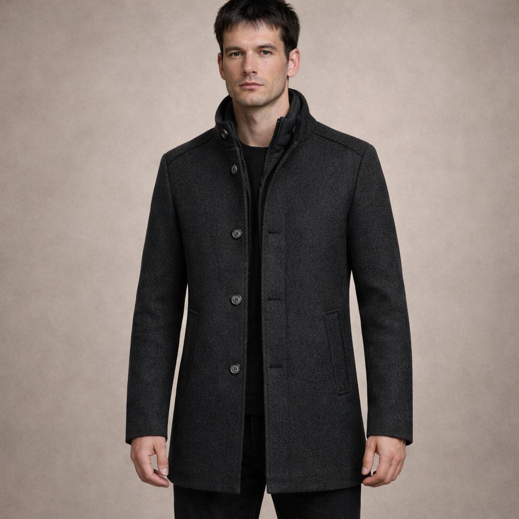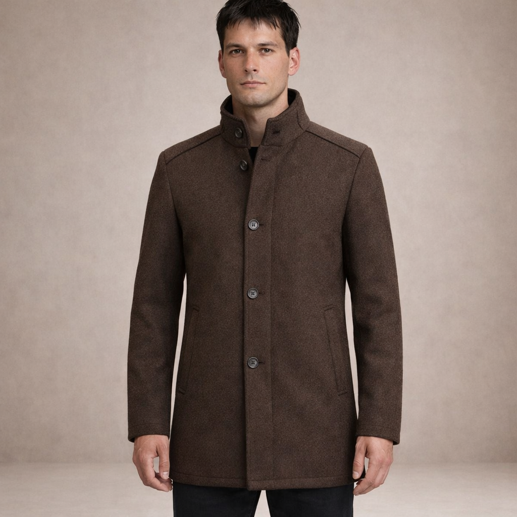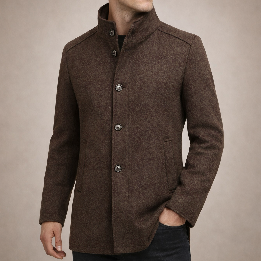 Key features of this Men’s Wool-Blend Stand Collar Coat
