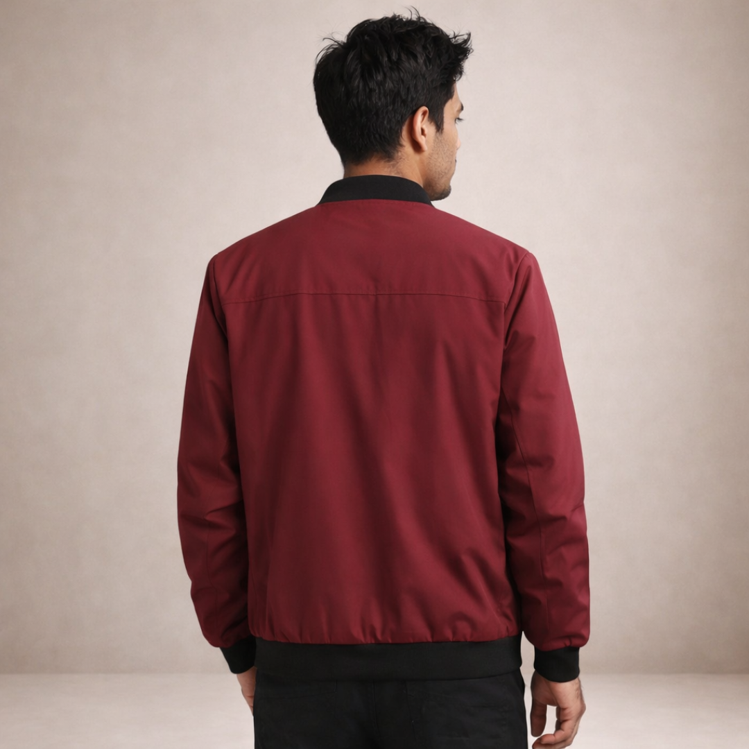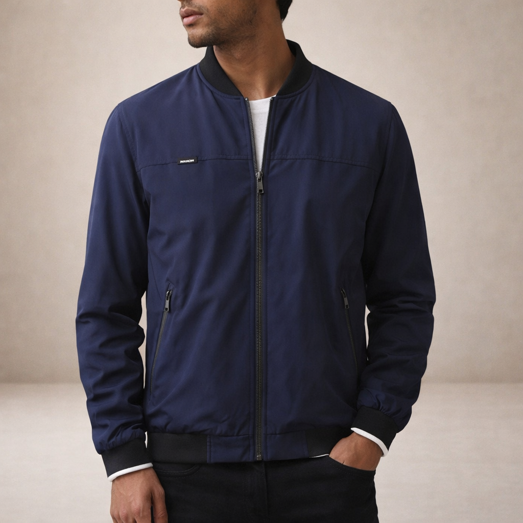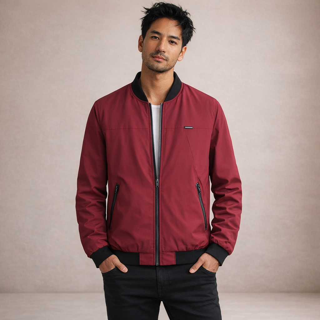 Design: Classic bomber silhouette with a ribbed collar for a sharp, contemporary finish.