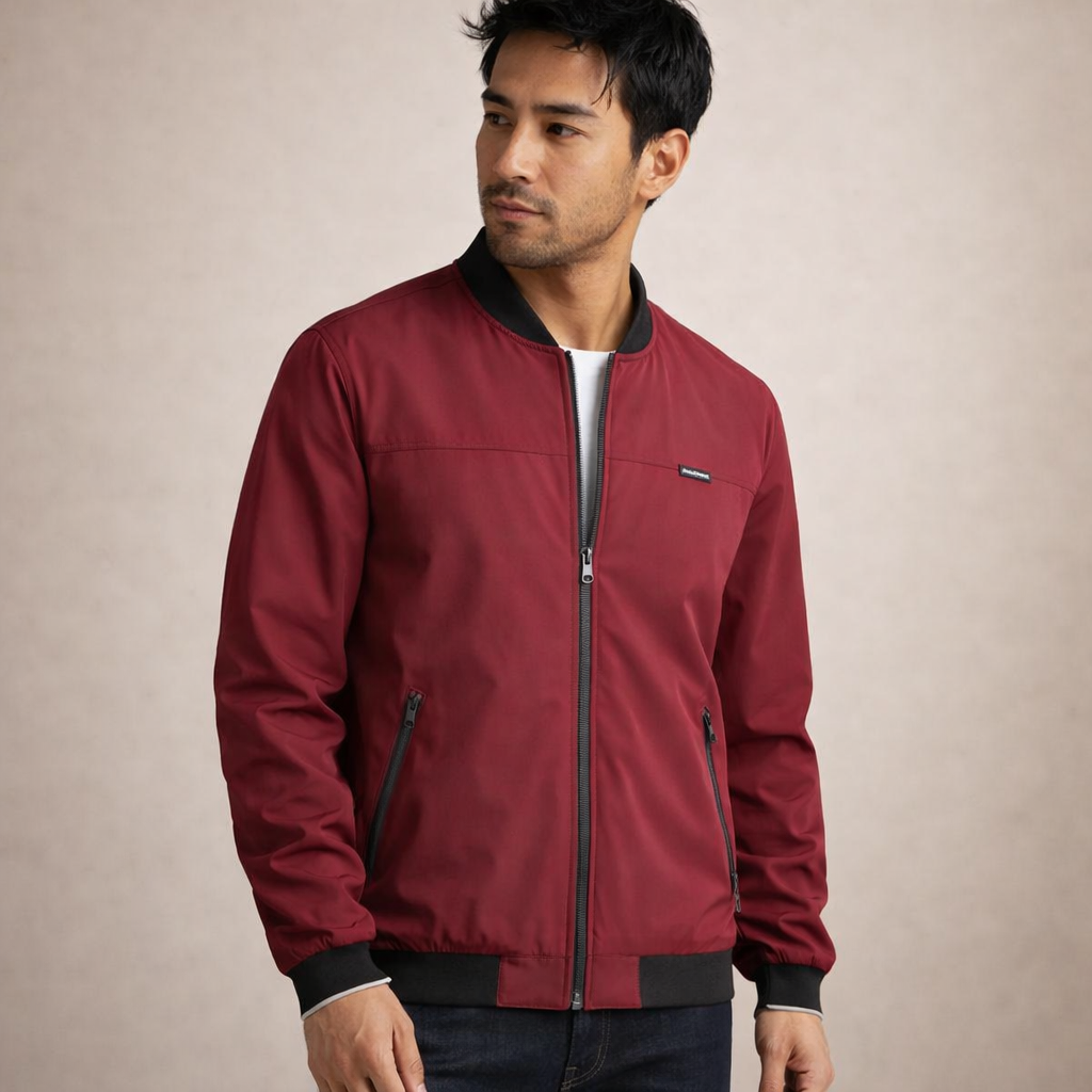 Men’s Zip-Front Bomber Jacket with Ribbed Trim