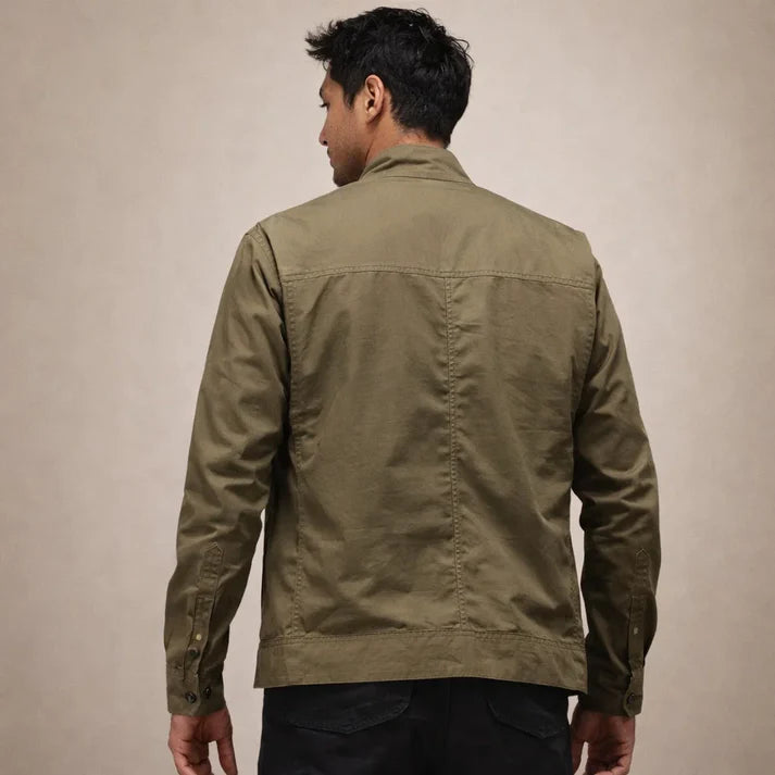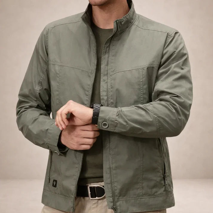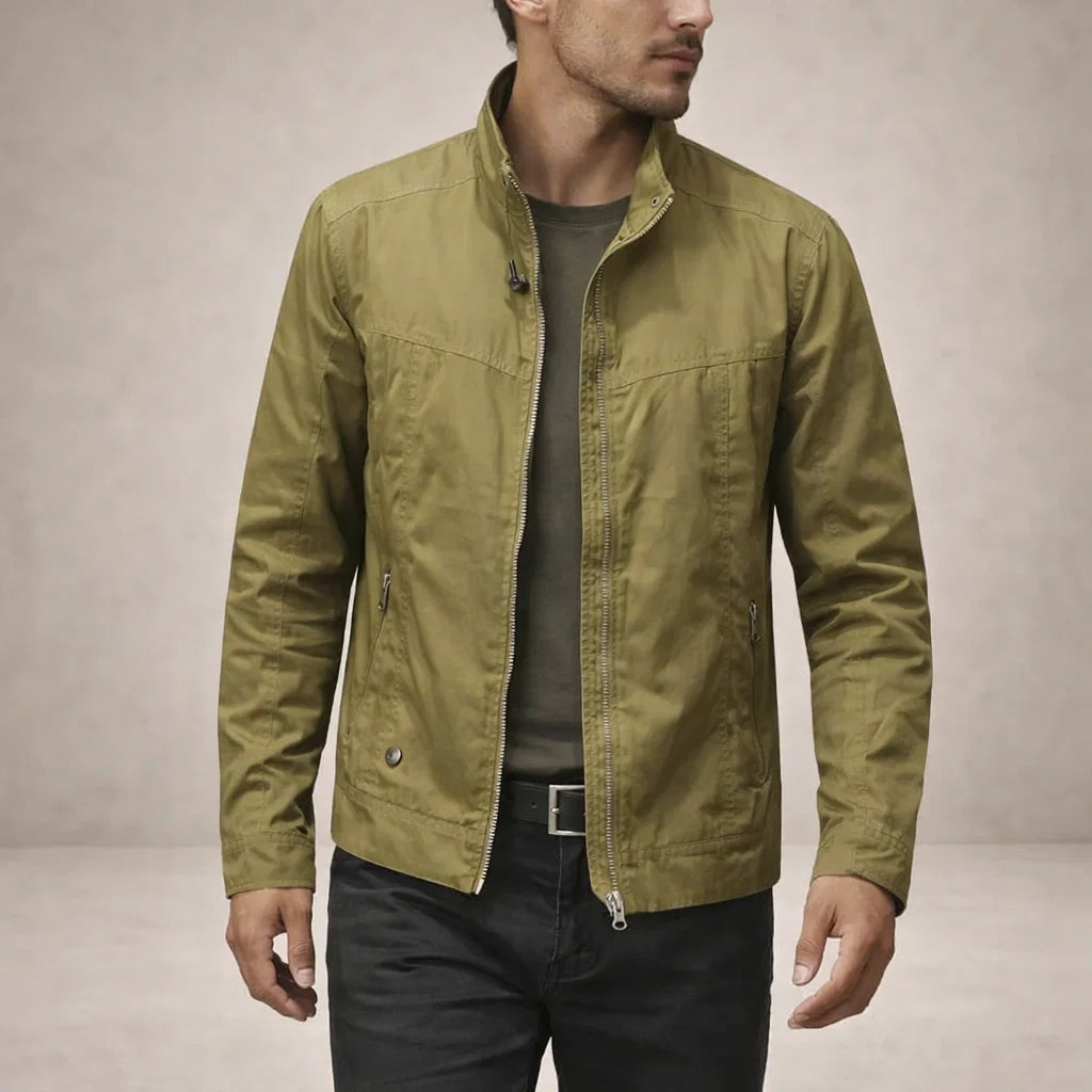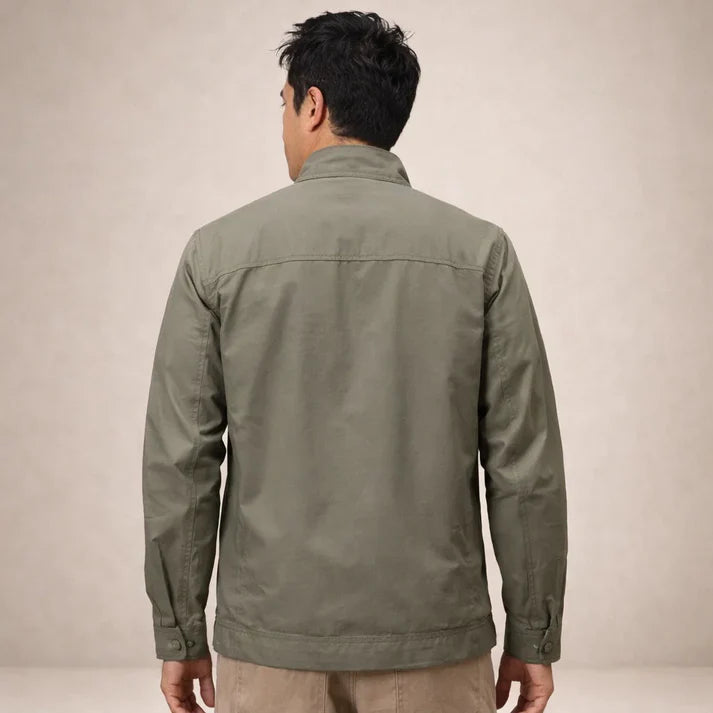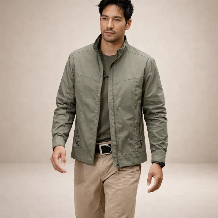 Men’s Zip Front Jacket with Stand Collar and Long Sleeves