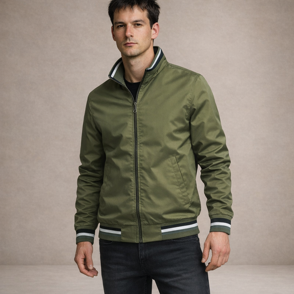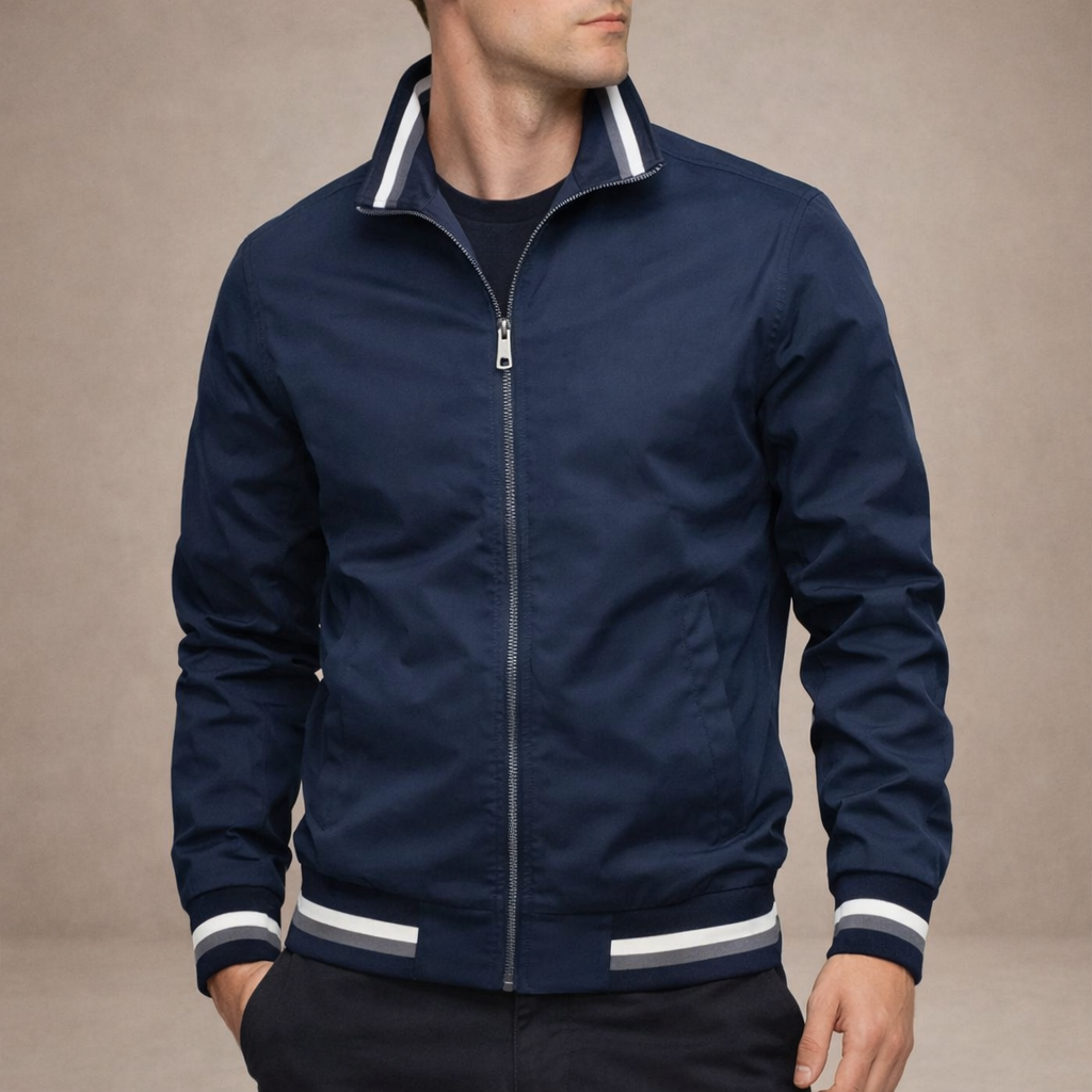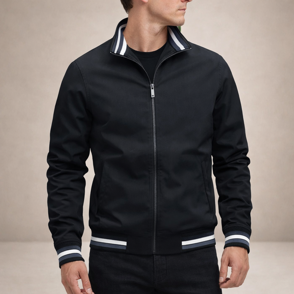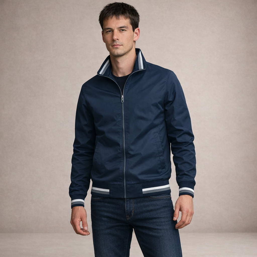 Men’s Zip Through Jacket with Contrast Stripe Trim
