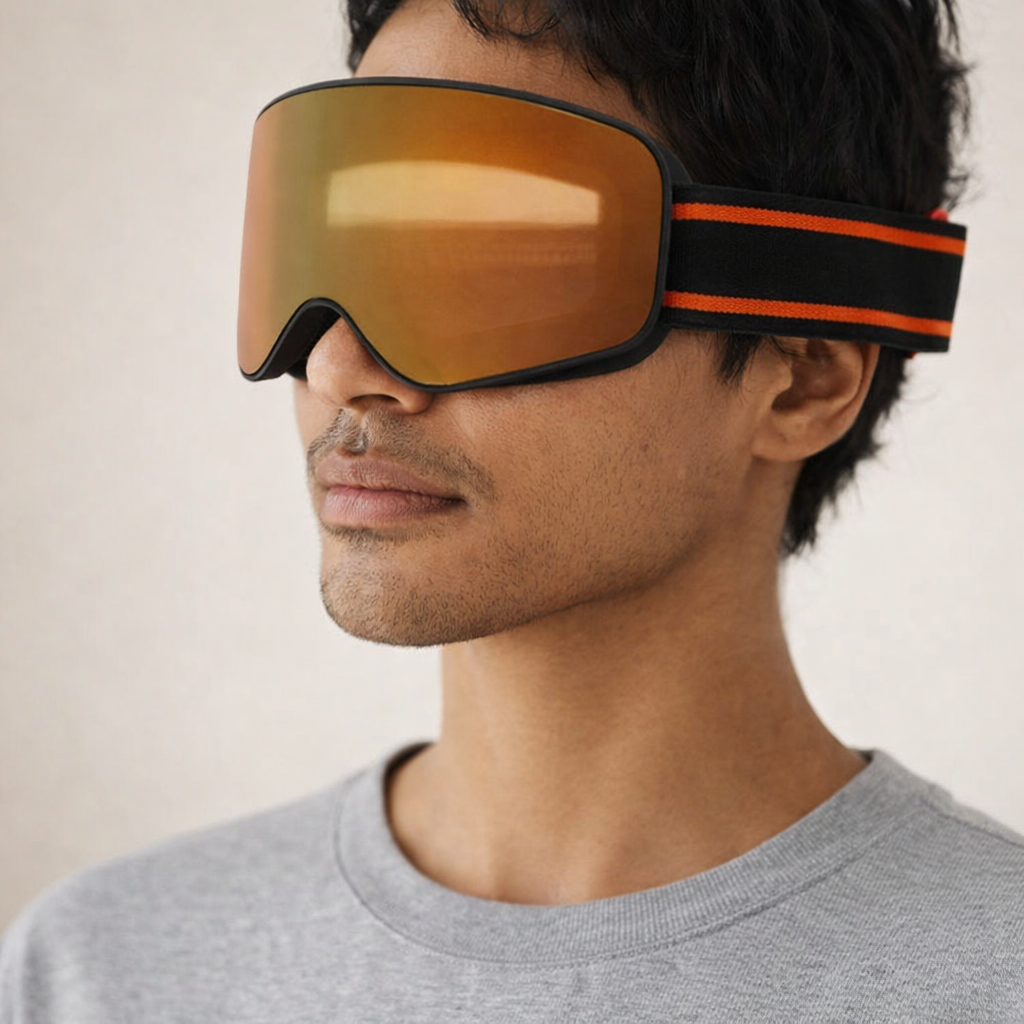 Designed for clarity and protection on the slopes, these ski goggles combine streamlined style with reliable performance. The bold strap detail adds a dynamic finish, while the wide lens delivers a clean, uninterrupted field of vision for winter sports and mountain days.