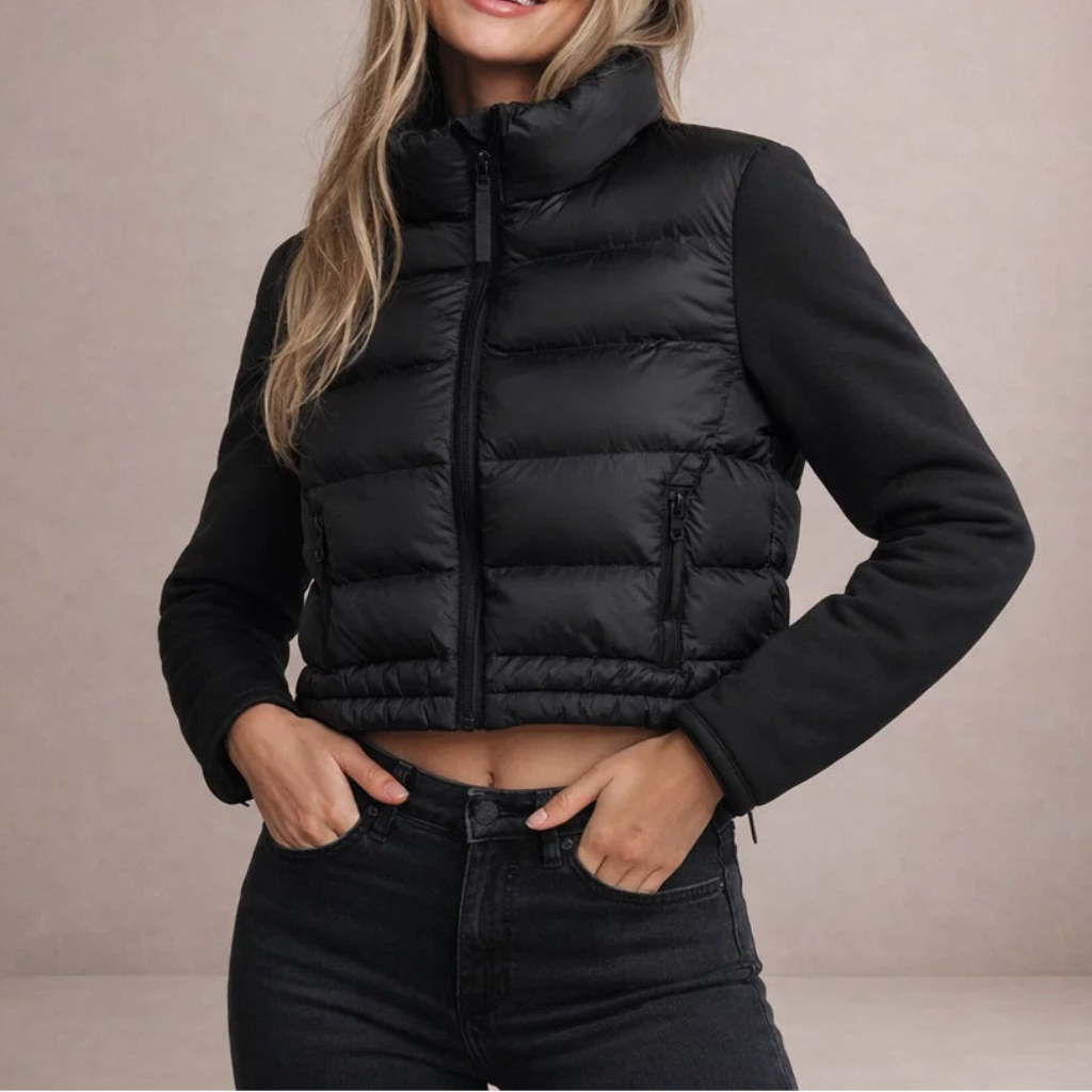 Sleek, modern and designed for everyday versatility, this Women’s Cropped Puffer Jacket delivers warmth without compromising on style. The quilted body creates a contemporary silhouette, while the streamlined sleeves add a refined contrast. Perfect for layering through cooler days, it pairs effortlessly with high-waisted denim or casual separates.