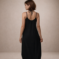 Details: Slim cami straps, a gently scooped neckline, and a subtle side slit for added ease and shape