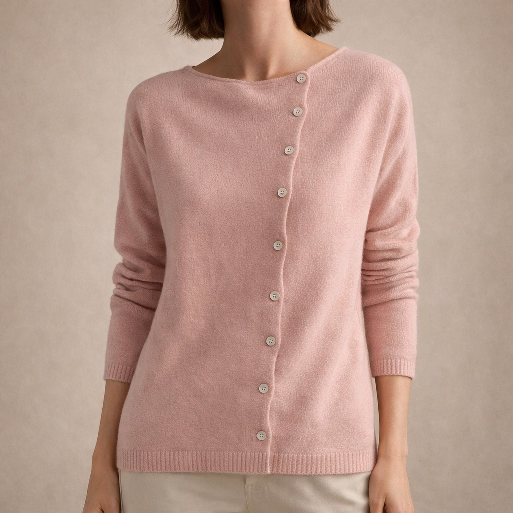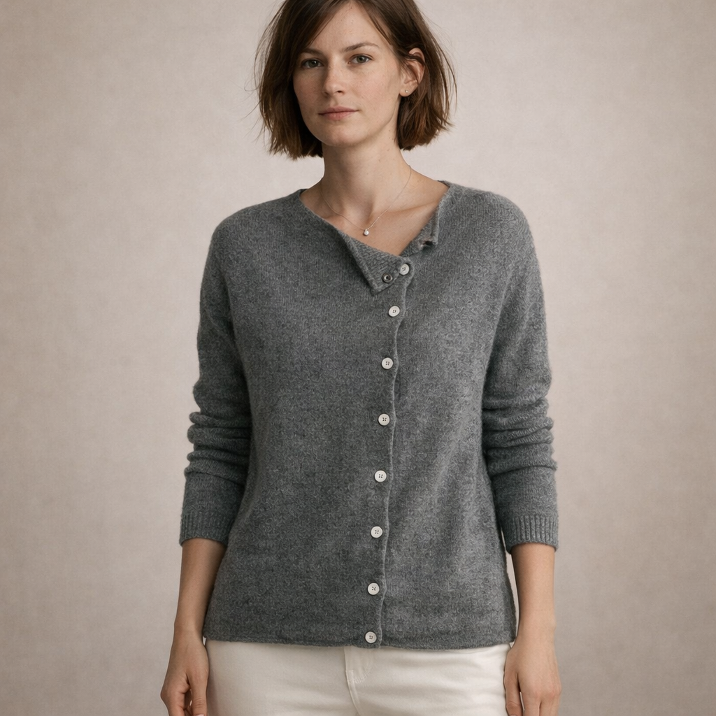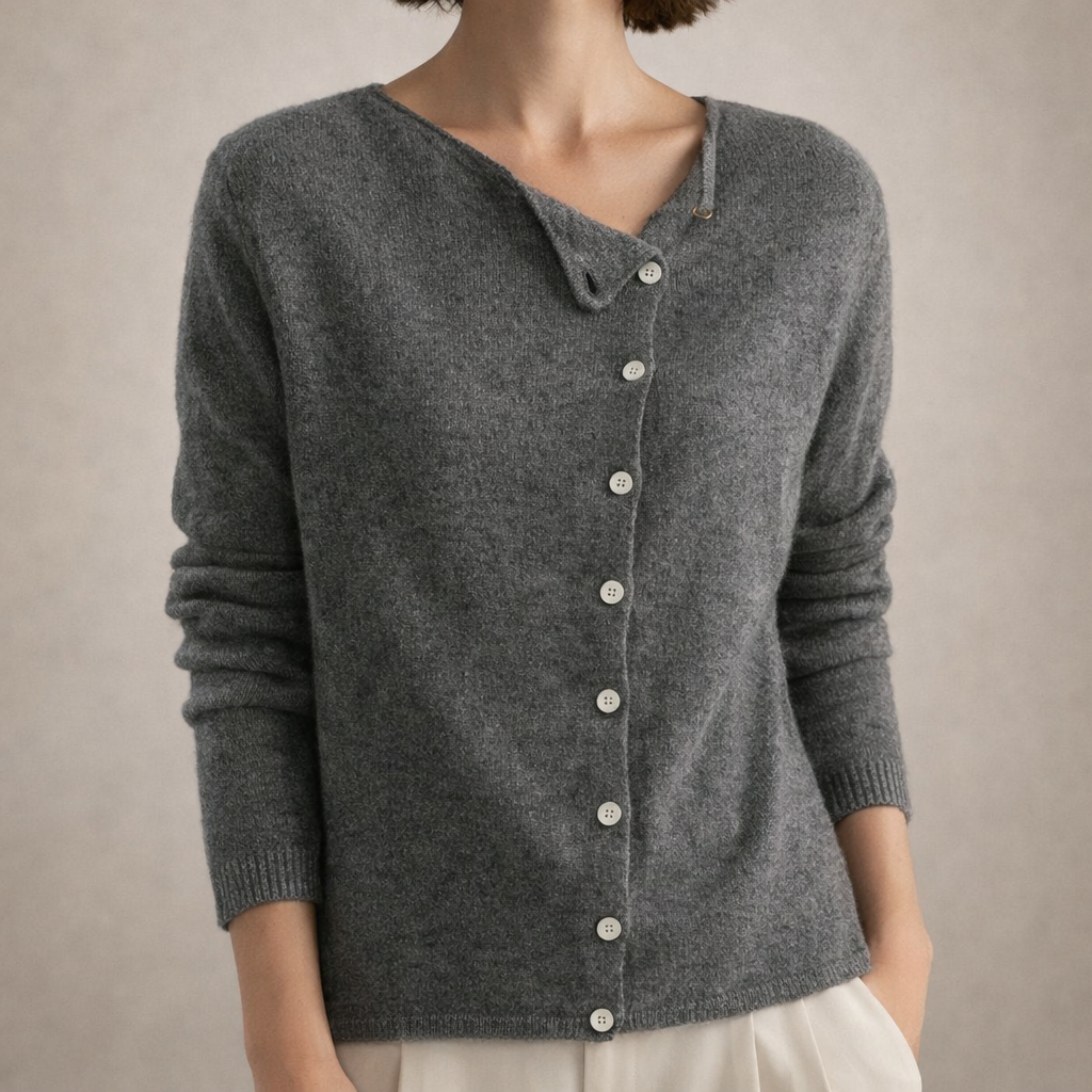 Women’s Button Through Knit Cardigan with Asymmetric Neckline