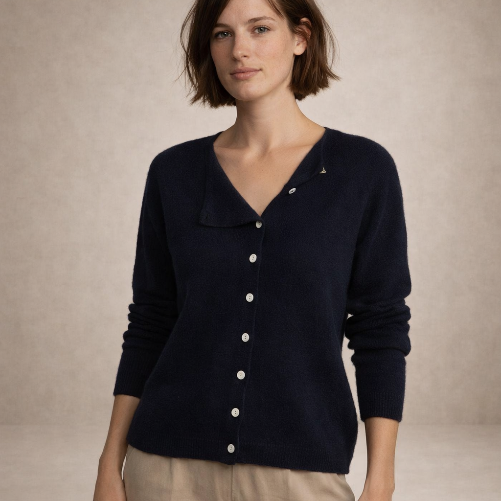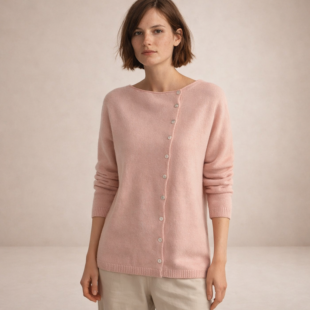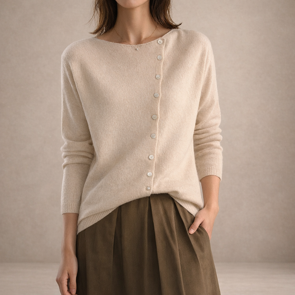 Women’s Button Through Knit Cardigan with Asymmetric Neckline