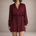 Design: Classic shirt-style silhouette with a full button-through front and pointed collar for a timeless finish