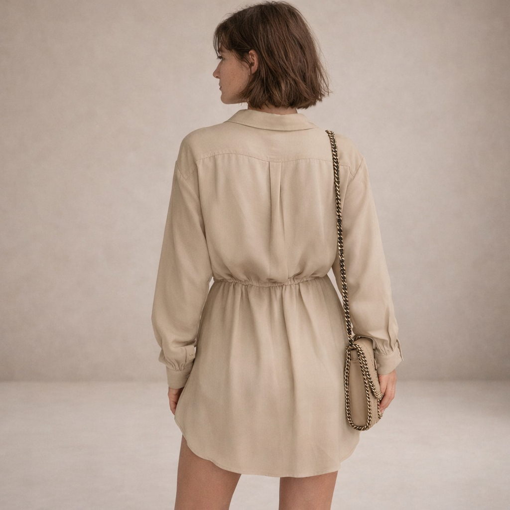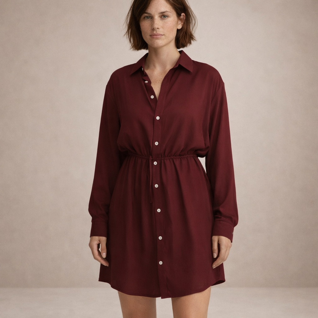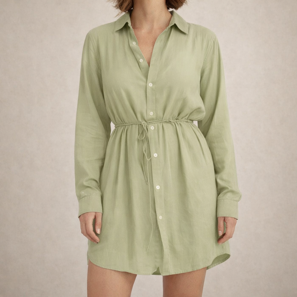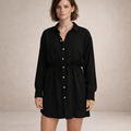 Key features of this Women’s Button-Through Shirt Dress with Drawstring Waist