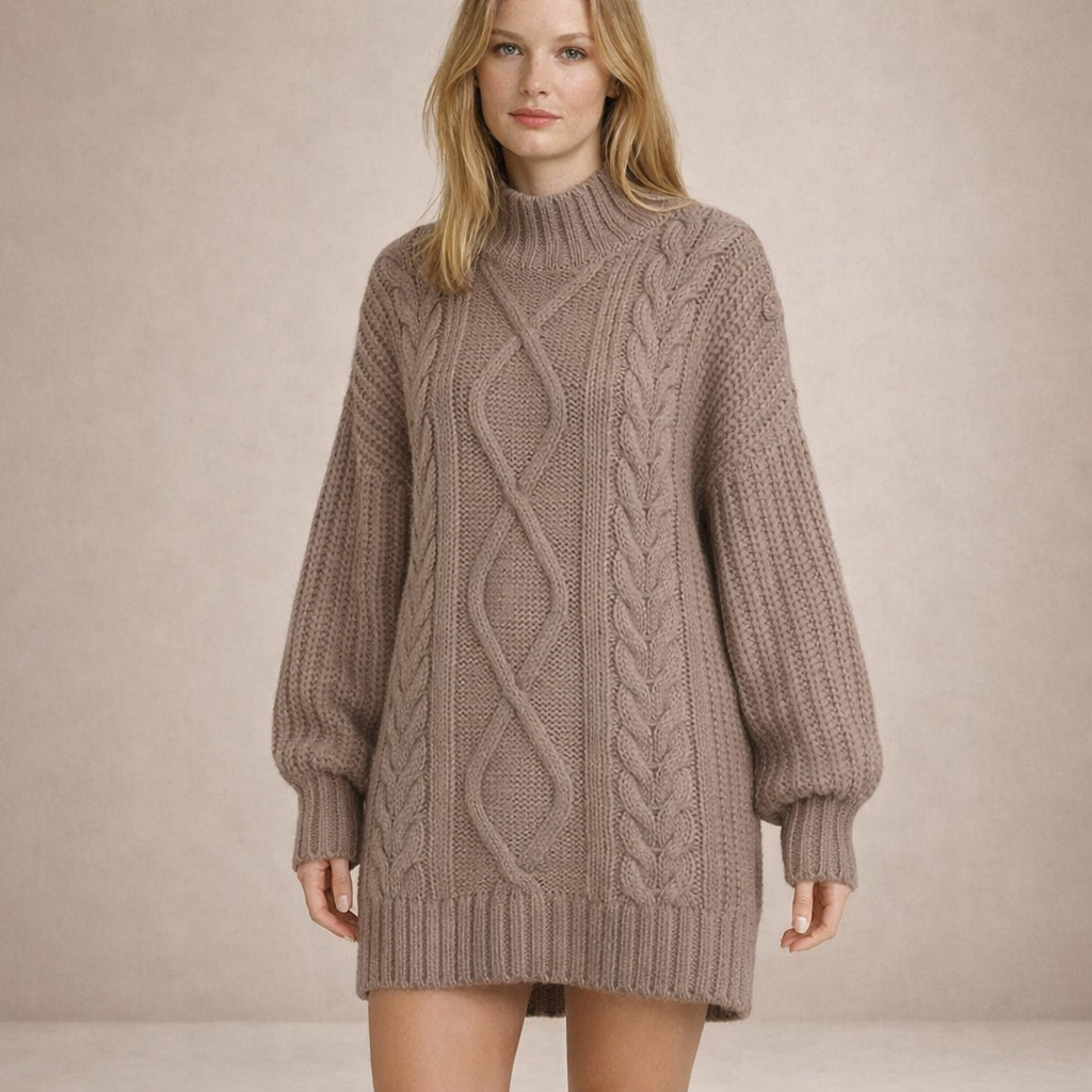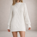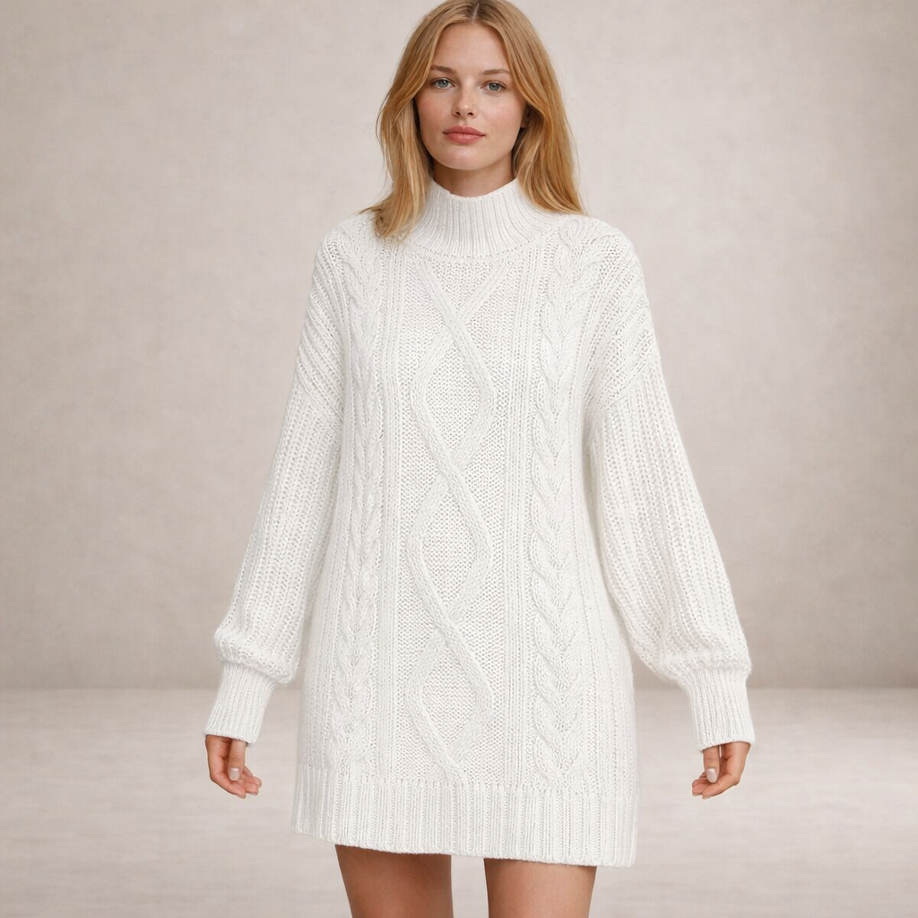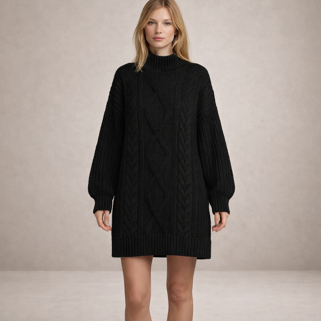 Key features of this Women’s Cable Knit Jumper Dress with Balloon Sleeves