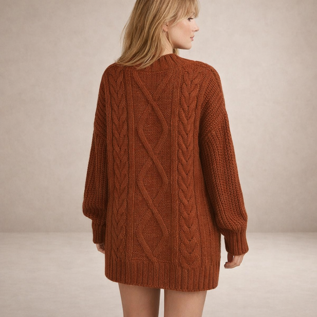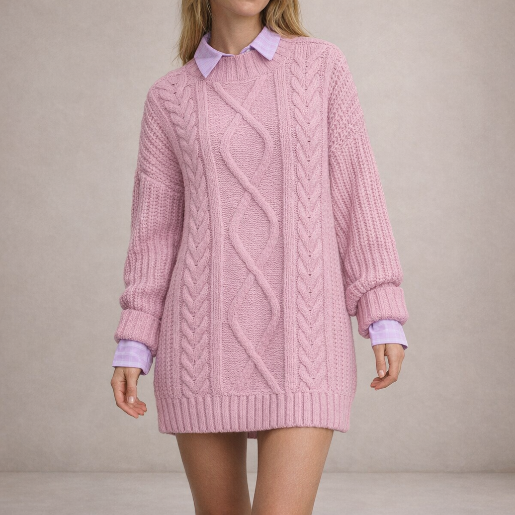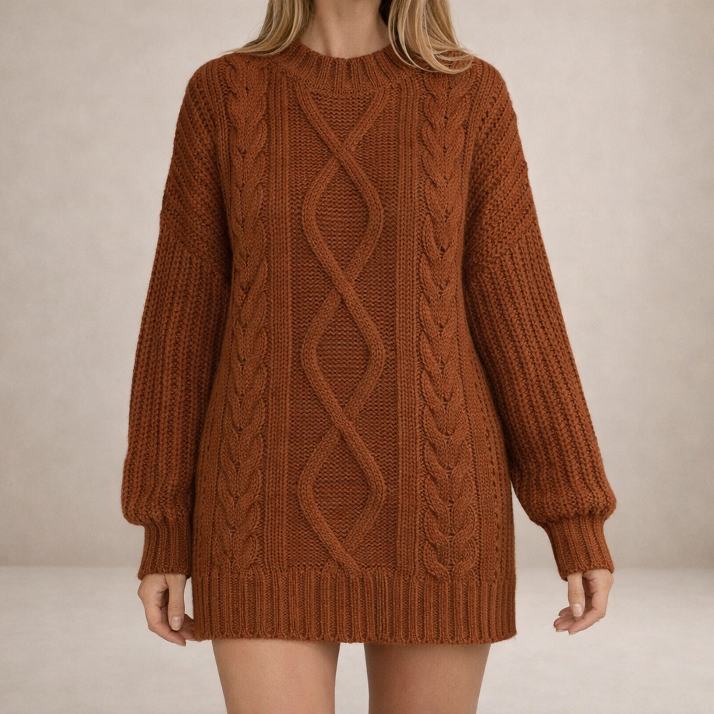 Key features of this Women’s Cable Knit Jumper Dress with Balloon Sleeves