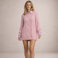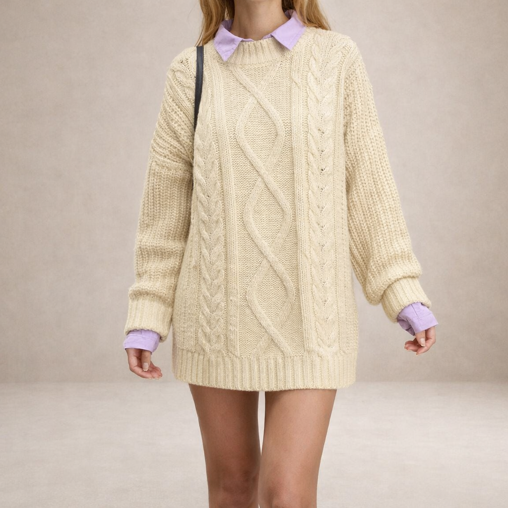Design: Classic cable knit pattern with a round neckline and statement balloon sleeves for added texture and visual interest.