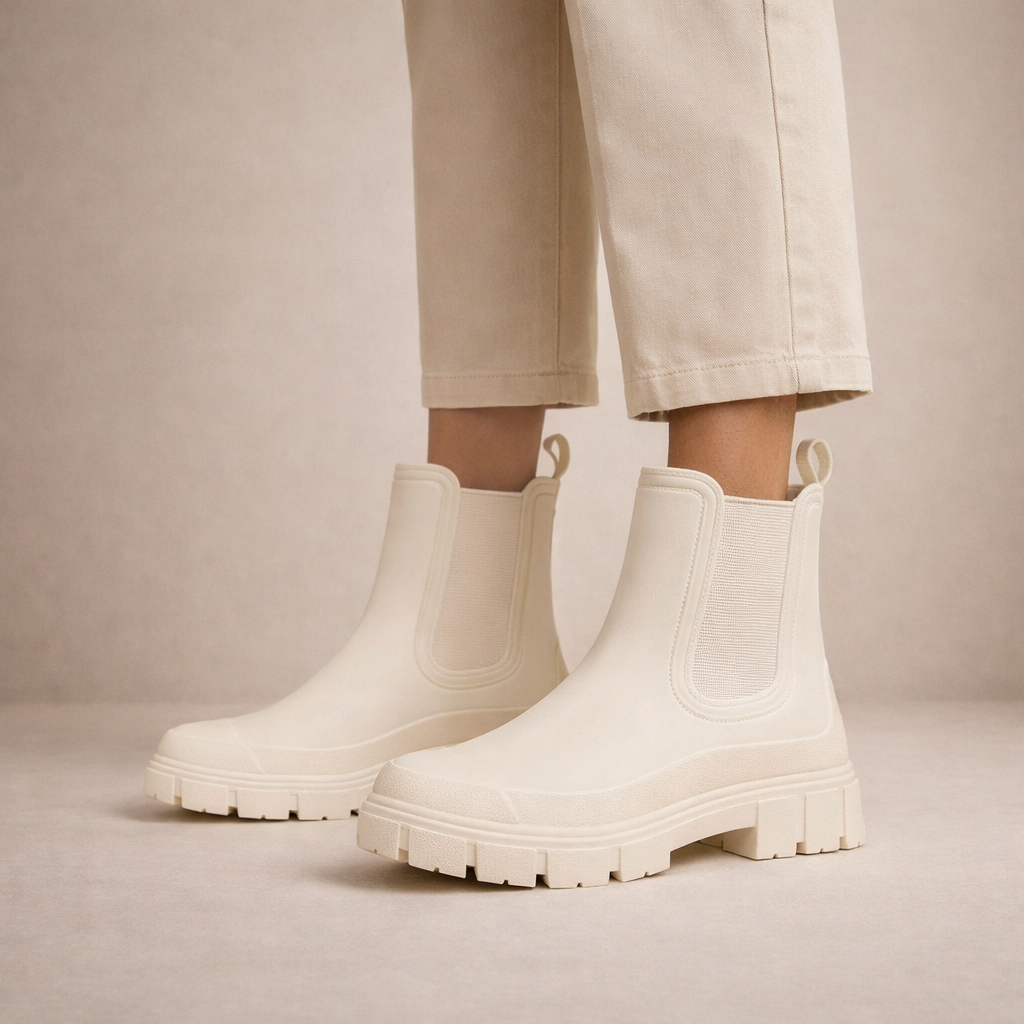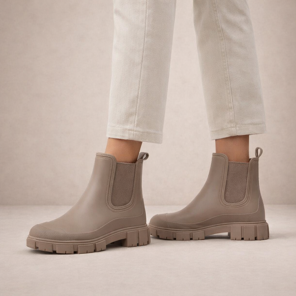 These women’s waterproof Chelsea boots combine modern minimalism with everyday practicality, making them a stylish solution for wet-weather dressing. Designed with a clean silhouette and sturdy sole, they offer reliable protection without compromising on contemporary appeal.